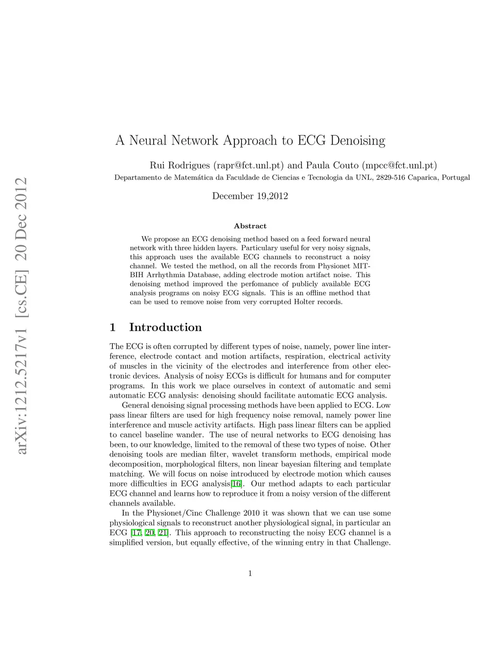A Neural Network Approach to ECG Denoising