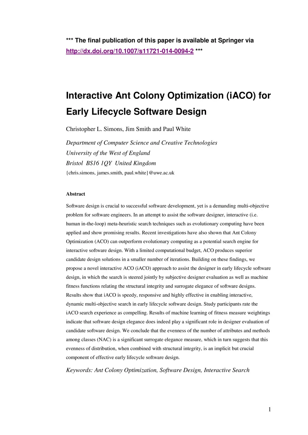 Interactive Ant Colony Optimisation (iACO) for Early Lifecycle Software