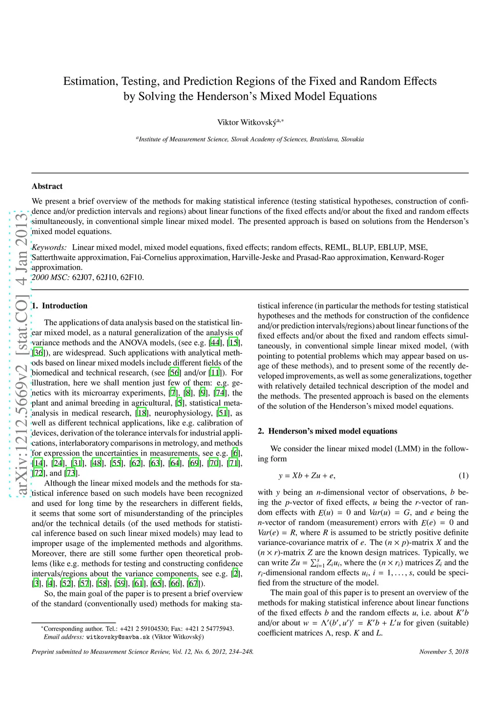 We present a brief overview of the methods for making statistical inference (testing statistical hypotheses, construction of confidence and/or prediction intervals and regions) about linear functions of the fixed effects and/or about the fixed and random effects simultaneously, in conventional simple linear mixed model. The presented approach is based on solutions from the Henderson's mixed model equations.