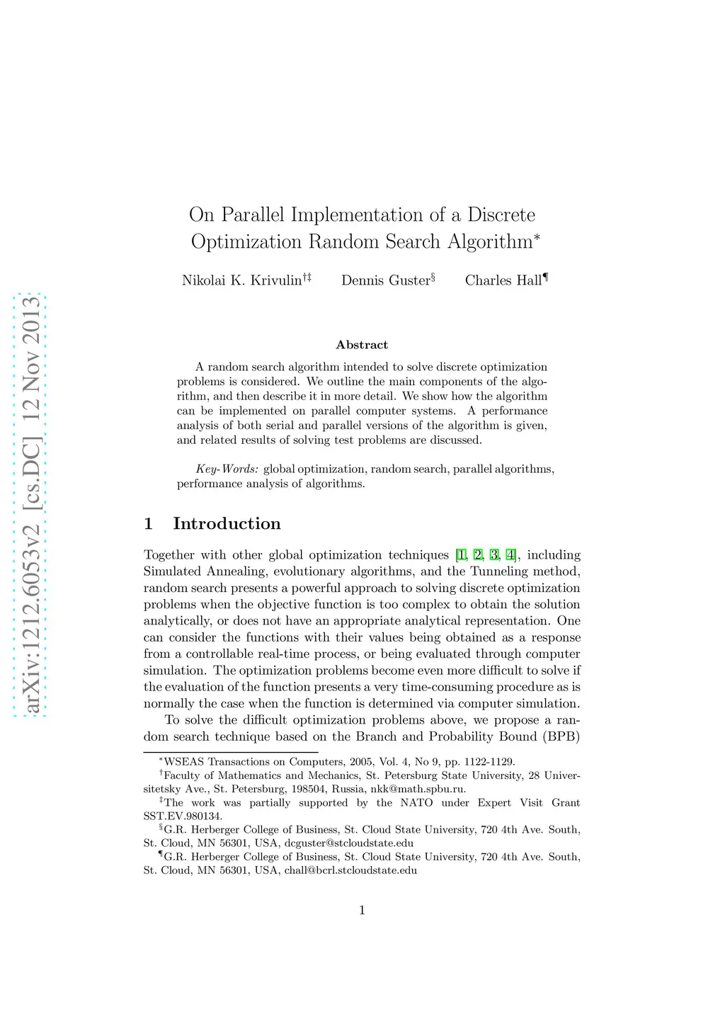 On parallel implementation of a discrete optimization random search