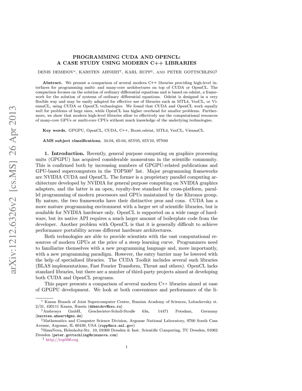 Programming CUDA and OpenCL: A Case Study Using Modern C++ Libraries