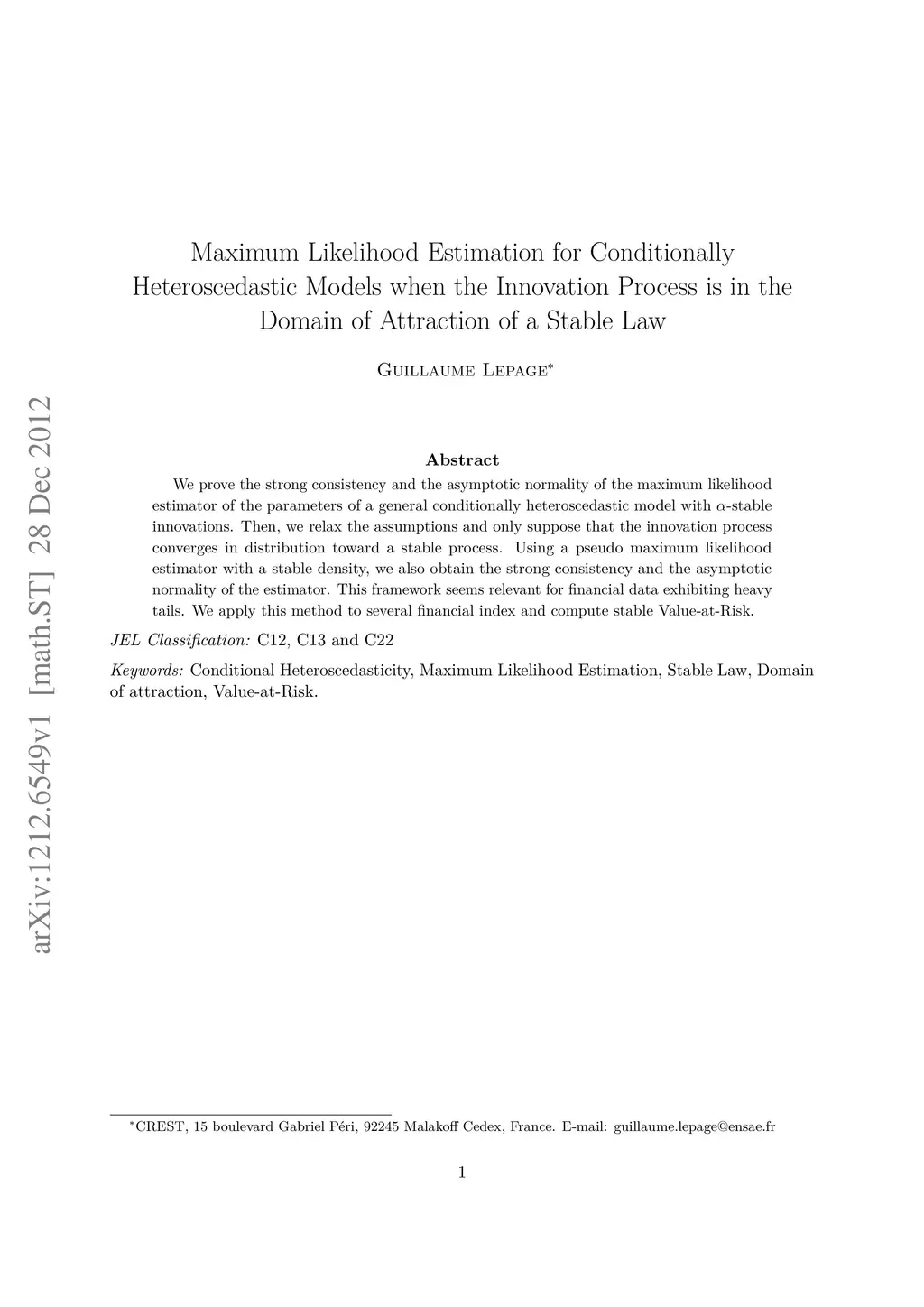 Maximum Likelihood Estimation for Conditionally Heteroscedastic Models