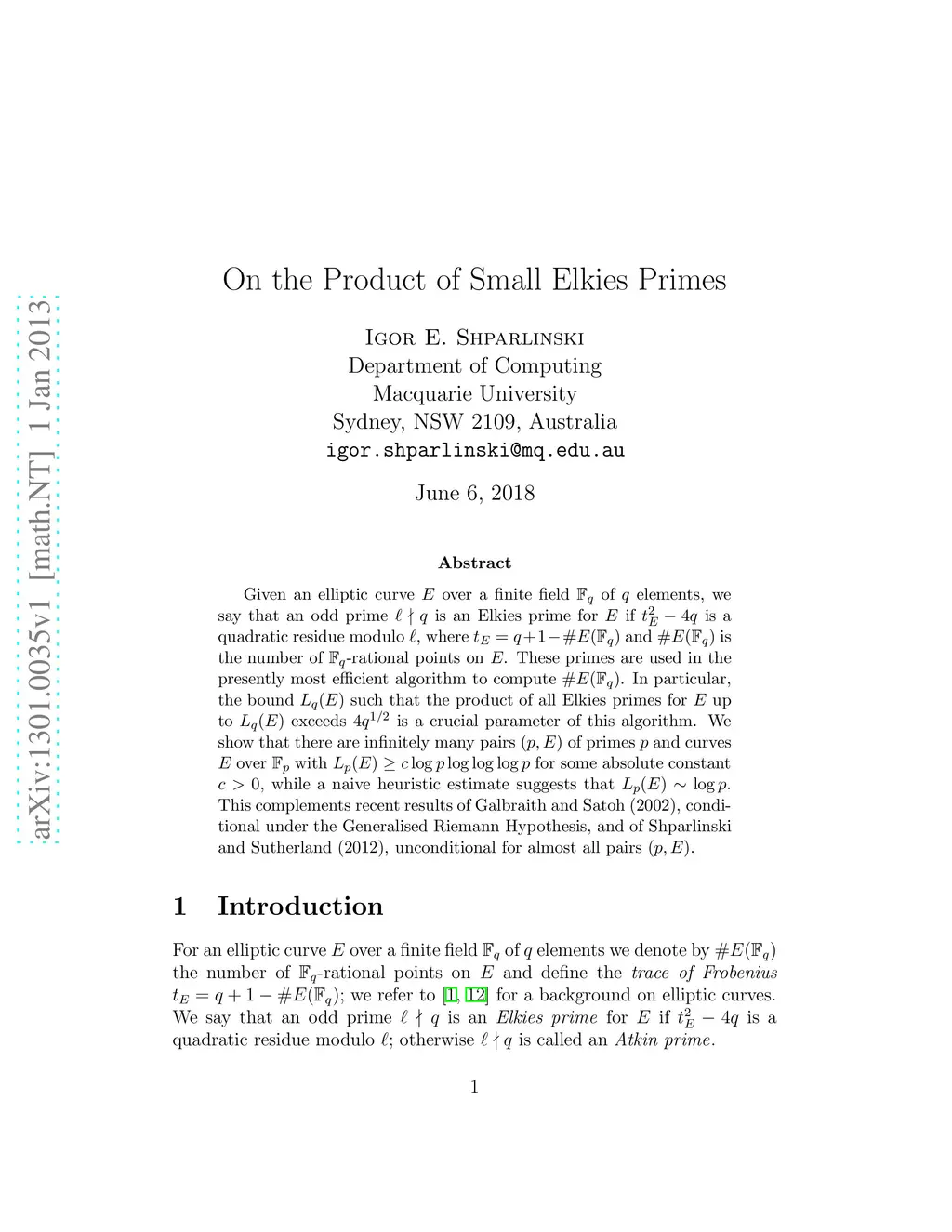 On the Product of Small Elkies Primes