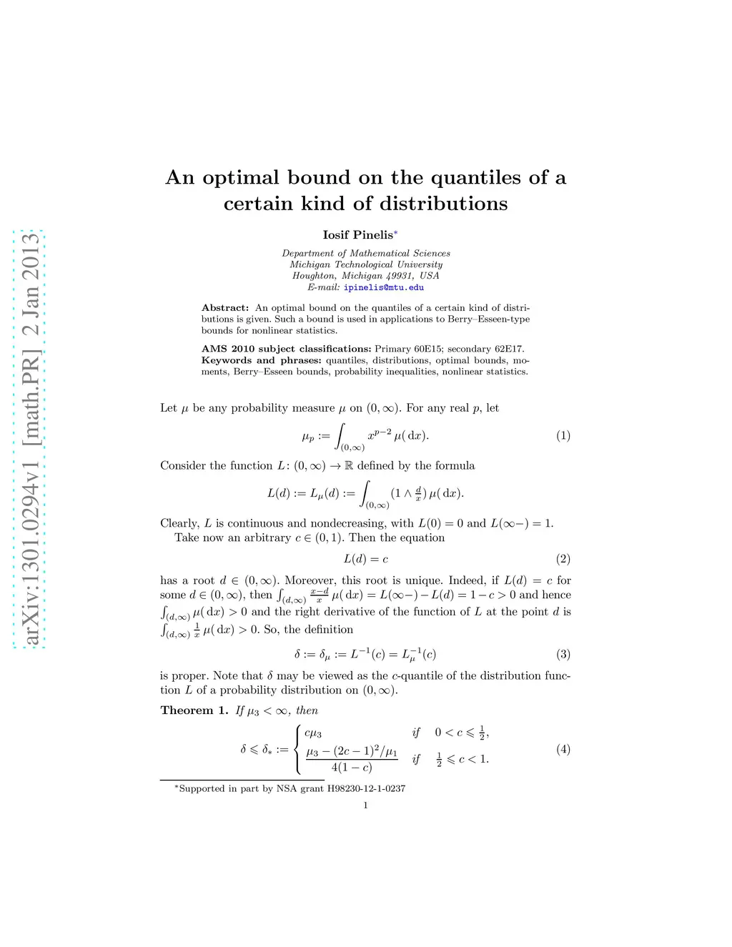 An optimal bound on the quantiles of a certain kind of distributions is given. Such a bound is used in applications to Berry--Esseen-type bounds for nonlinear statistics.