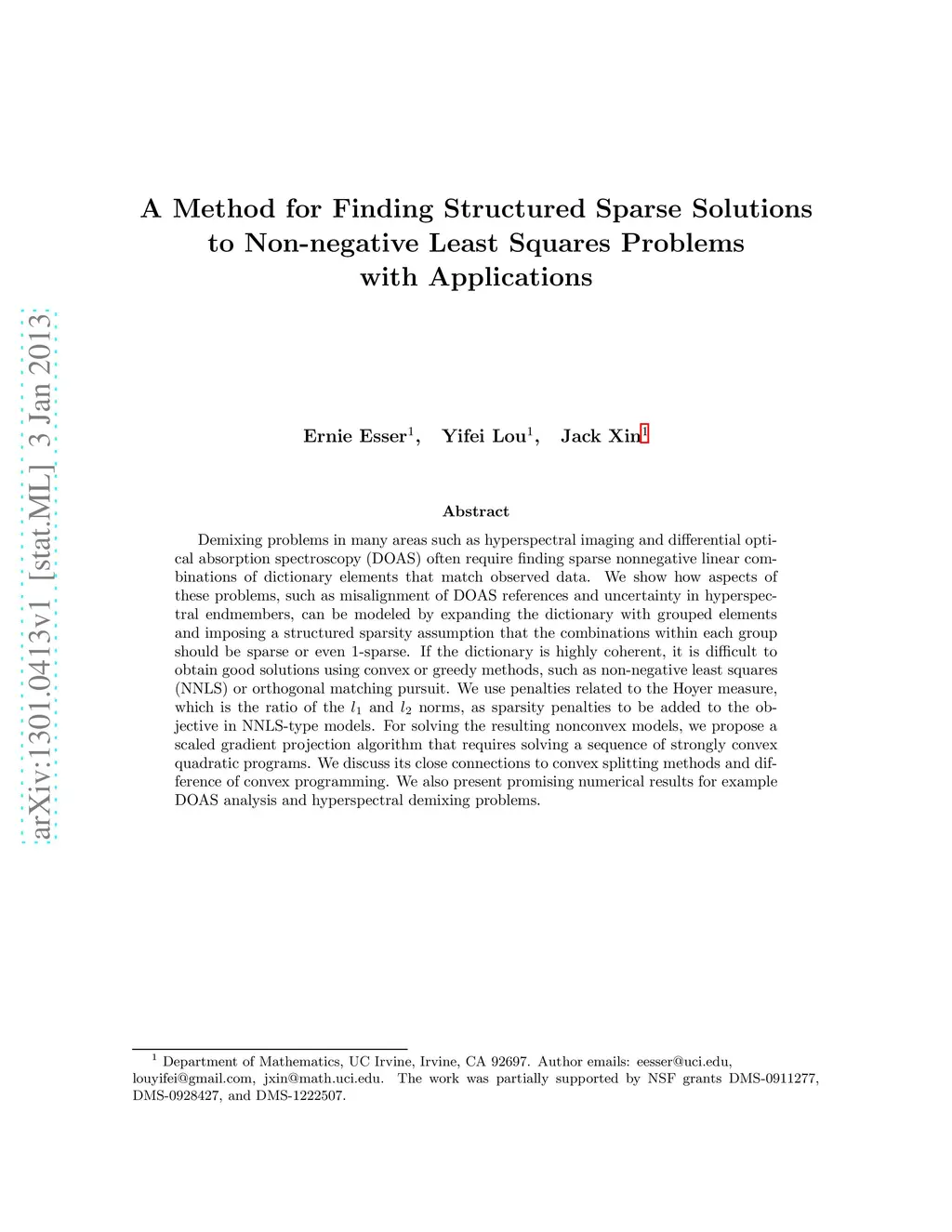 A Method for Finding Structured Sparse Solutions to Non-negative Least