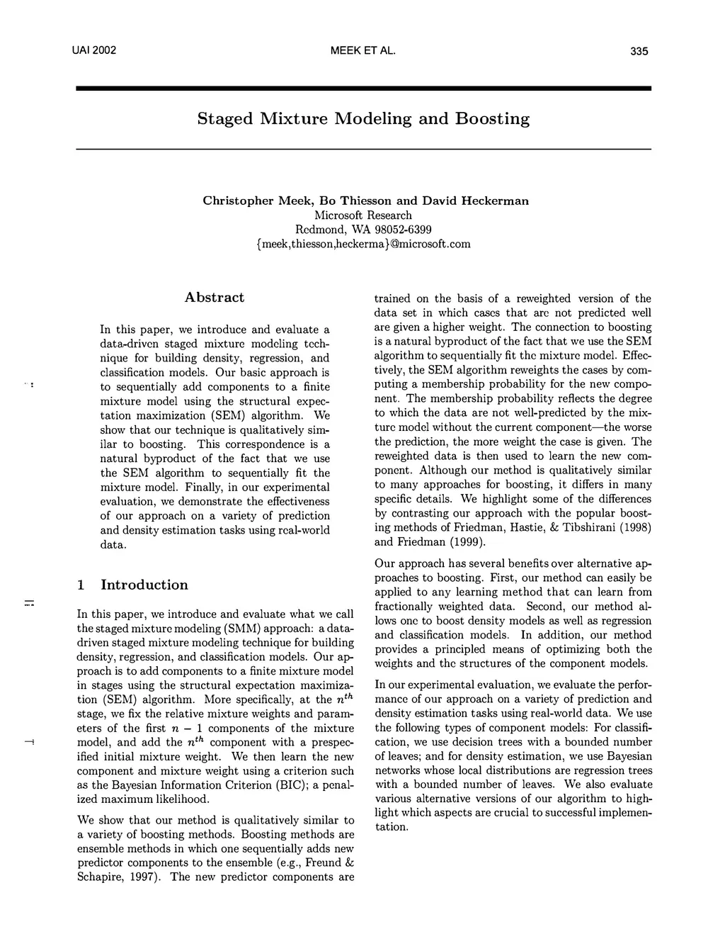 In this paper, we introduce and evaluate a data-driven staged mixture modeling technique for building density, regression, and classification models. Our basic approach is to sequentially add components to a finite mixture model using the structural expectation maximization (SEM) algorithm. We show that our technique is qualitatively similar to boosting. This correspondence is a natural byproduct of the fact that we use the SEM algorithm to sequentially fit the mixture model. Finally, in our experimental evaluation, we demonstrate the effectiveness of our approach on a variety of prediction and density estimation tasks using real-world data.