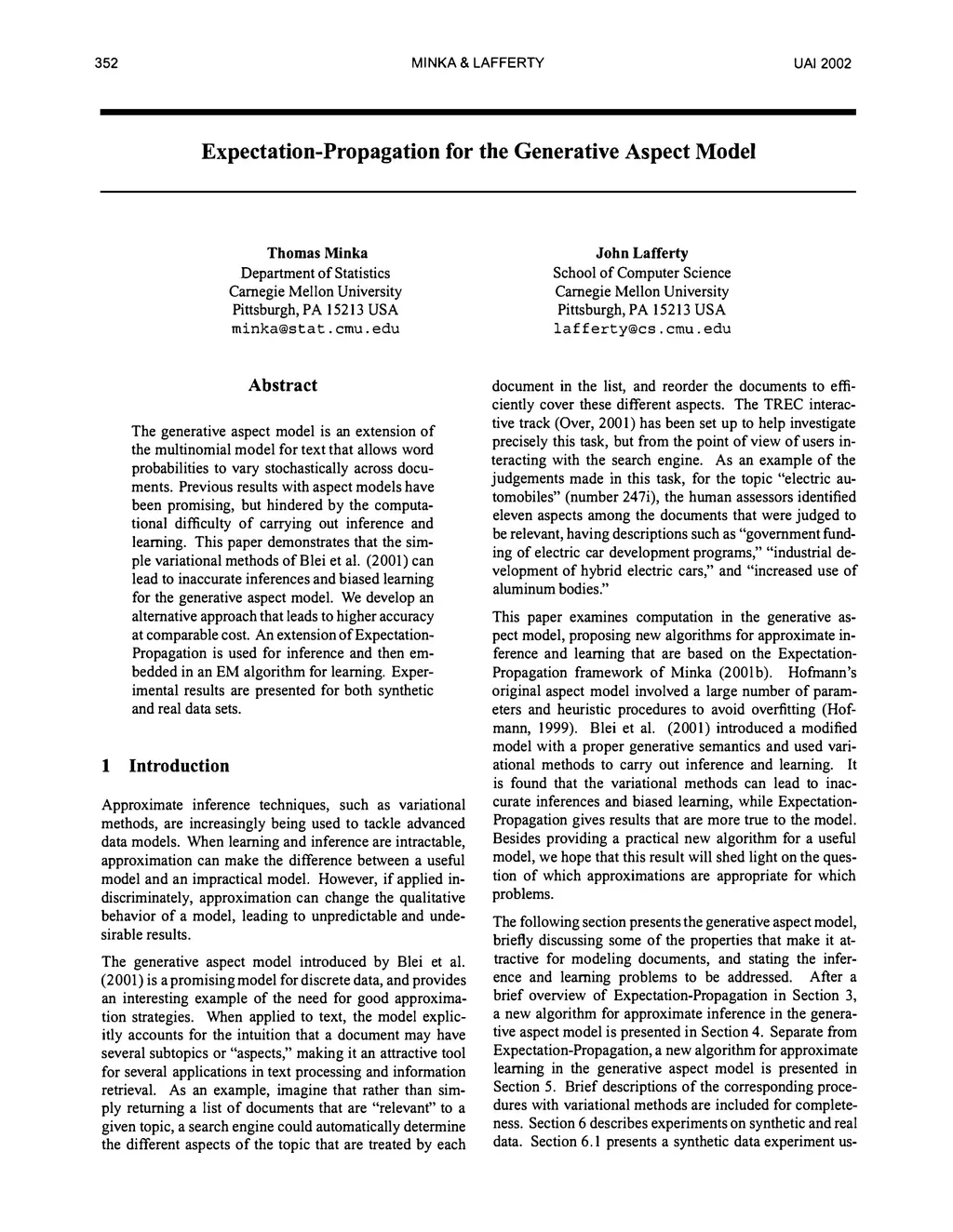The generative aspect model is an extension of the multinomial model for text that allows word probabilities to vary stochastically across documents. Previous results with aspect models have been promising, but hindered by the computational difficulty of carrying out inference and learning. This paper demonstrates that the simple variational methods of Blei et al (2001) can lead to inaccurate inferences and biased learning for the generative aspect model. We develop an alternative approach that leads to higher accuracy at comparable cost. An extension of Expectation-Propagation is used for inference and then embedded in an EM algorithm for learning. Experimental results are presented for both synthetic and real data sets.