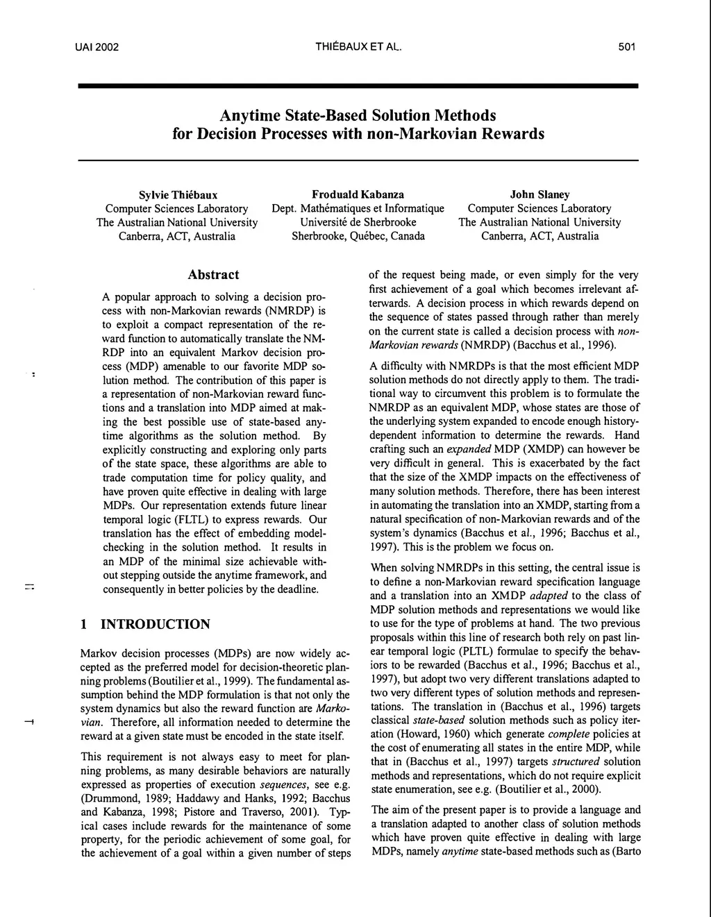 Anytime State-Based Solution Methods for Decision Processes with