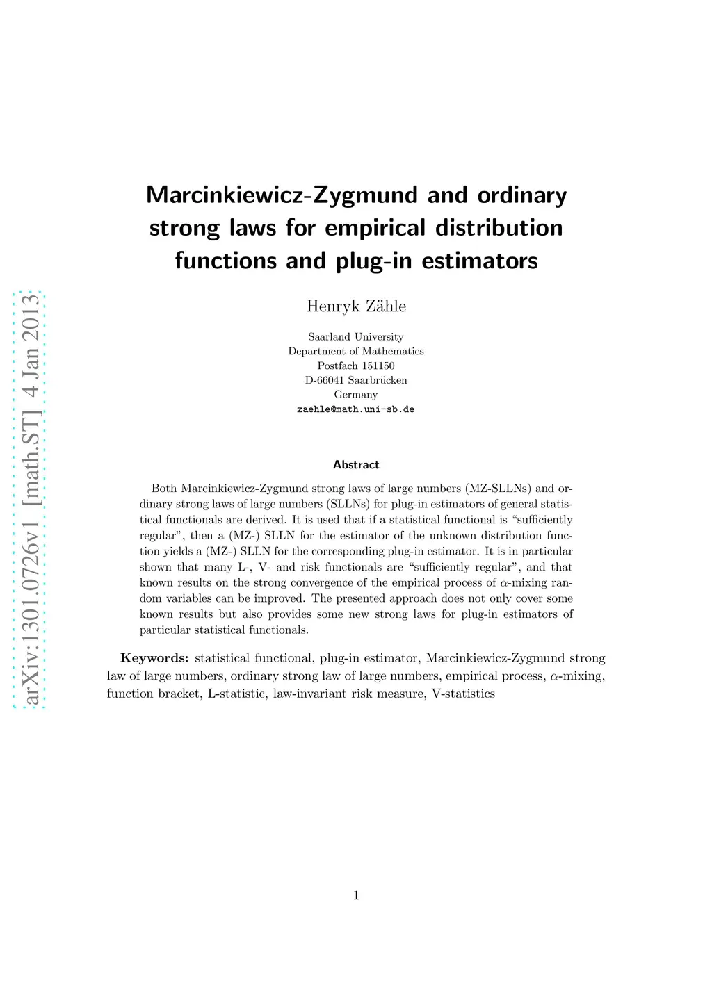 Both Marcinkiewicz-Zygmund strong laws of large numbers (MZ-SLLNs) and ordinary strong laws of large numbers (SLLNs) for plug-in estimators of general statistical functionals are derived. It is used that if a statistical functional is "sufficiently regular", then a (MZ-) SLLN for the estimator of the unknown distribution function yields a (MZ-) SLLN for the corresponding plug-in estimator. It is in particular shown that many L-, V- and risk functionals are "sufficiently regular", and that known results on the strong convergence of the empirical process of \alpha-mixing random variables can be improved. The presented approach does not only cover some known results but also provides some new strong laws for plug-in estimators of particular statistical functionals.
