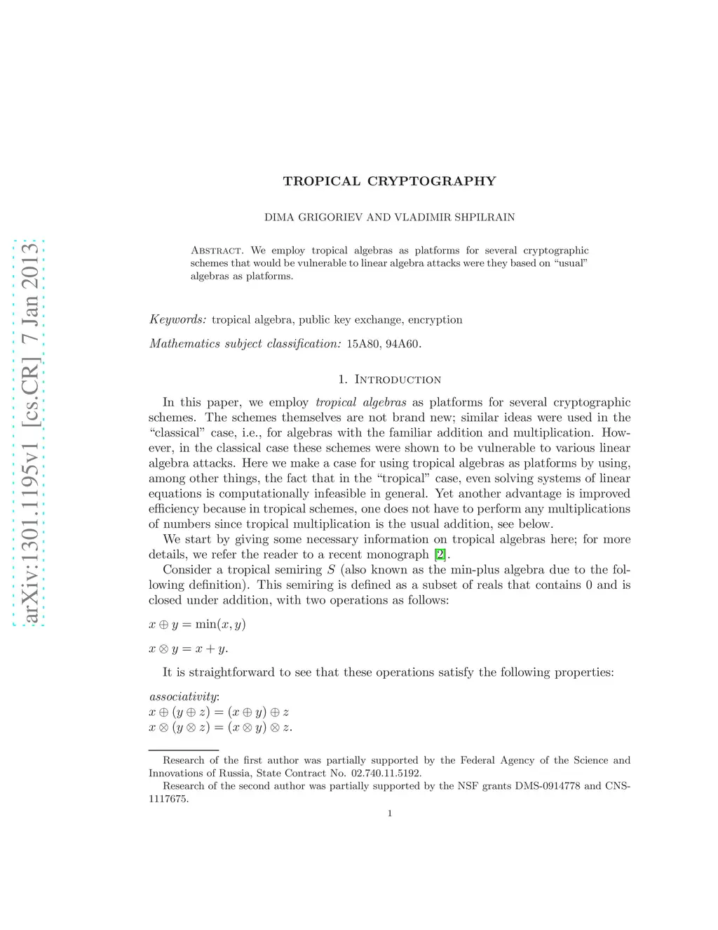 Tropical cryptography