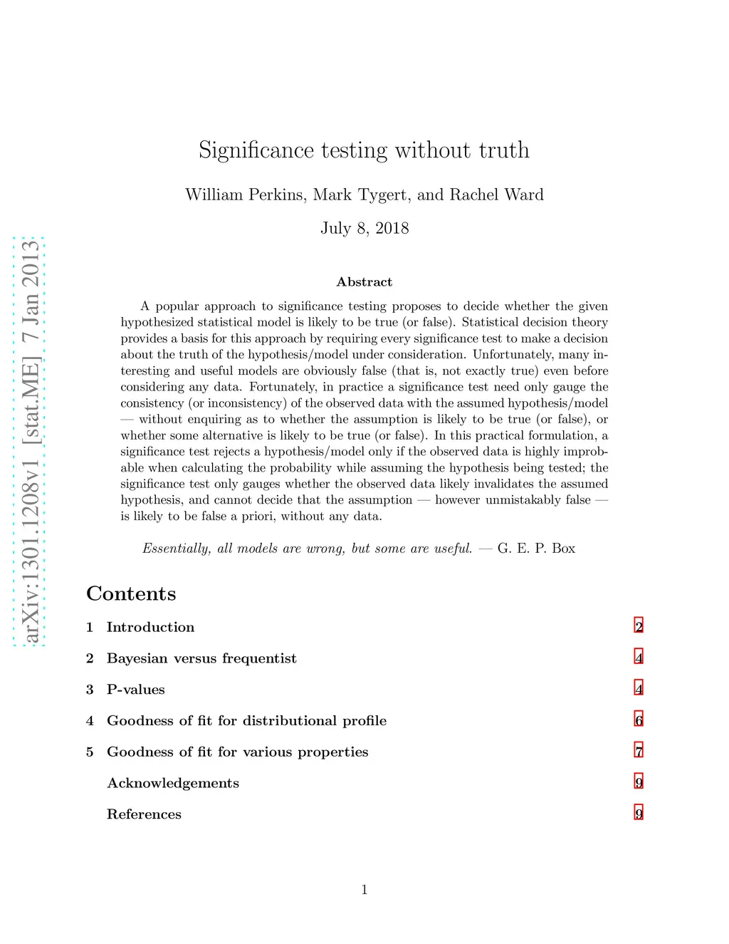 A popular approach to significance testing proposes to decide whether the given hypothesized statistical model is likely to be true (or false). Statistical decision theory provides a basis for this approach by requiring every significance test to make a decision about the truth of the hypothesis/model under consideration. Unfortunately, many interesting and useful models are obviously false (that is, not exactly true) even before considering any data. Fortunately, in practice a significance test need only gauge the consistency (or inconsistency) of the observed data with the assumed hypothesis/model -- without enquiring as to whether the assumption is likely to be true (or false), or whether some alternative is likely to be true (or false). In this practical formulation, a significance test rejects a hypothesis/model only if the observed data is highly improbable when calculating the probability while assuming the hypothesis being tested; the significance test only gauges whether the observed data likely invalidates the assumed hypothesis, and cannot decide that the assumption -- however unmistakably false -- is likely to be false a priori, without any data.