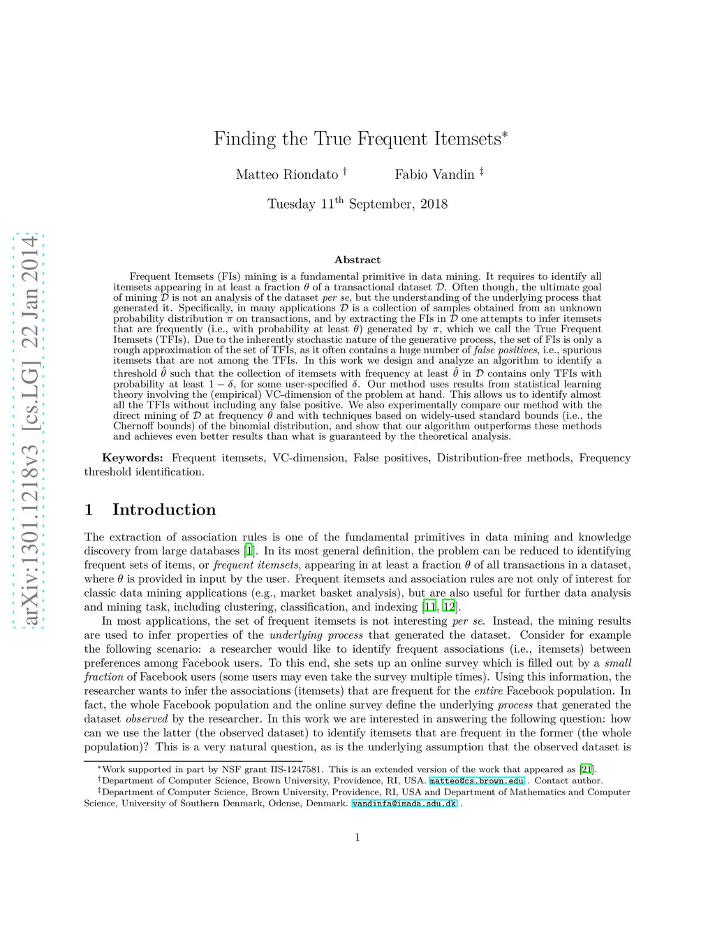 Finding the True Frequent Itemsets