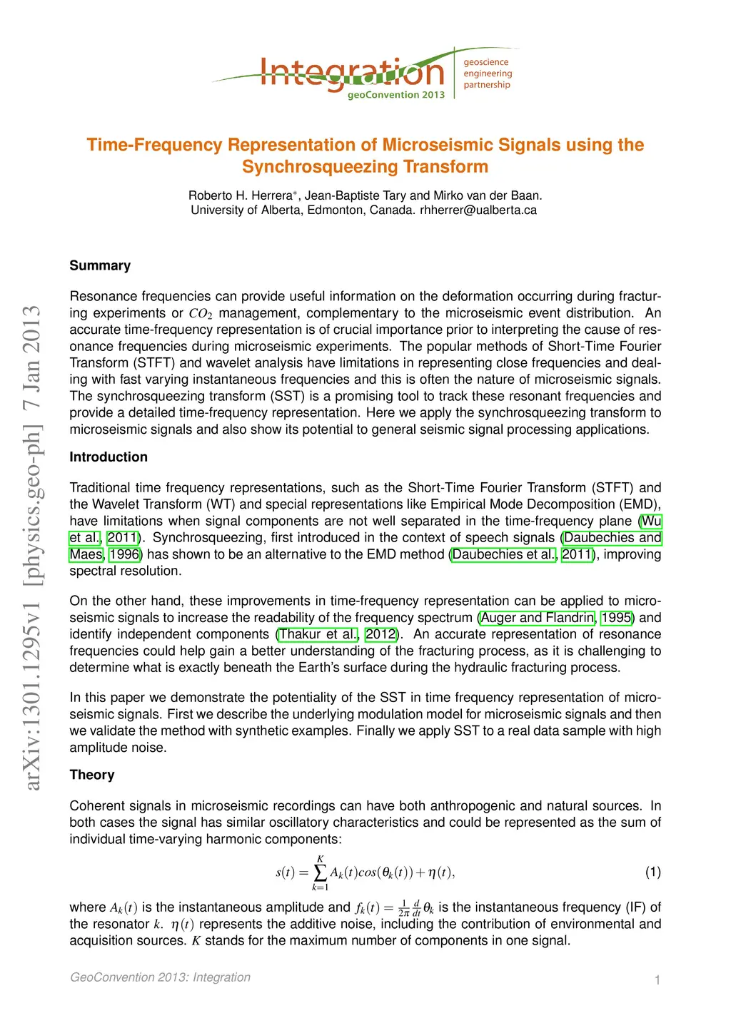 Time-Frequency Representation of Microseismic Signals using the
