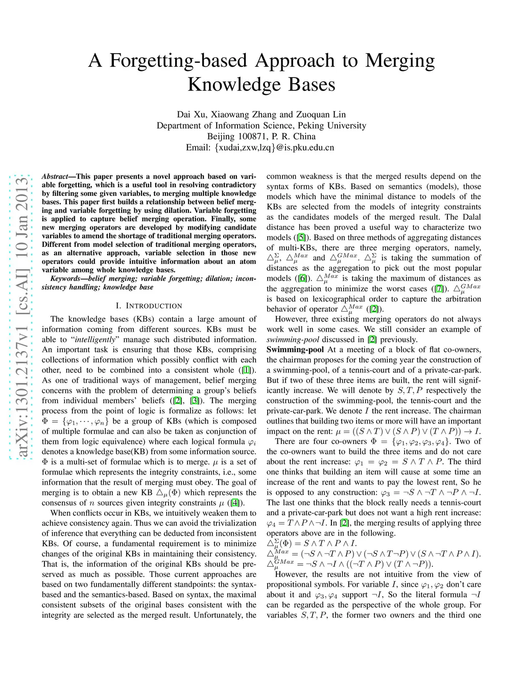 This paper presents a novel approach based on variable forgetting, which is a useful tool in resolving contradictory by filtering some given variables, to merging multiple knowledge bases. This paper first builds a relationship between belief merging and variable forgetting by using dilation. Variable forgetting is applied to capture belief merging operation. Finally, some new merging operators are developed by modifying candidate variables to amend the shortage of traditional merging operators. Different from model selection of traditional merging operators, as an alternative approach, variable selection in those new operators could provide intuitive information about an atom variable among whole knowledge bases.