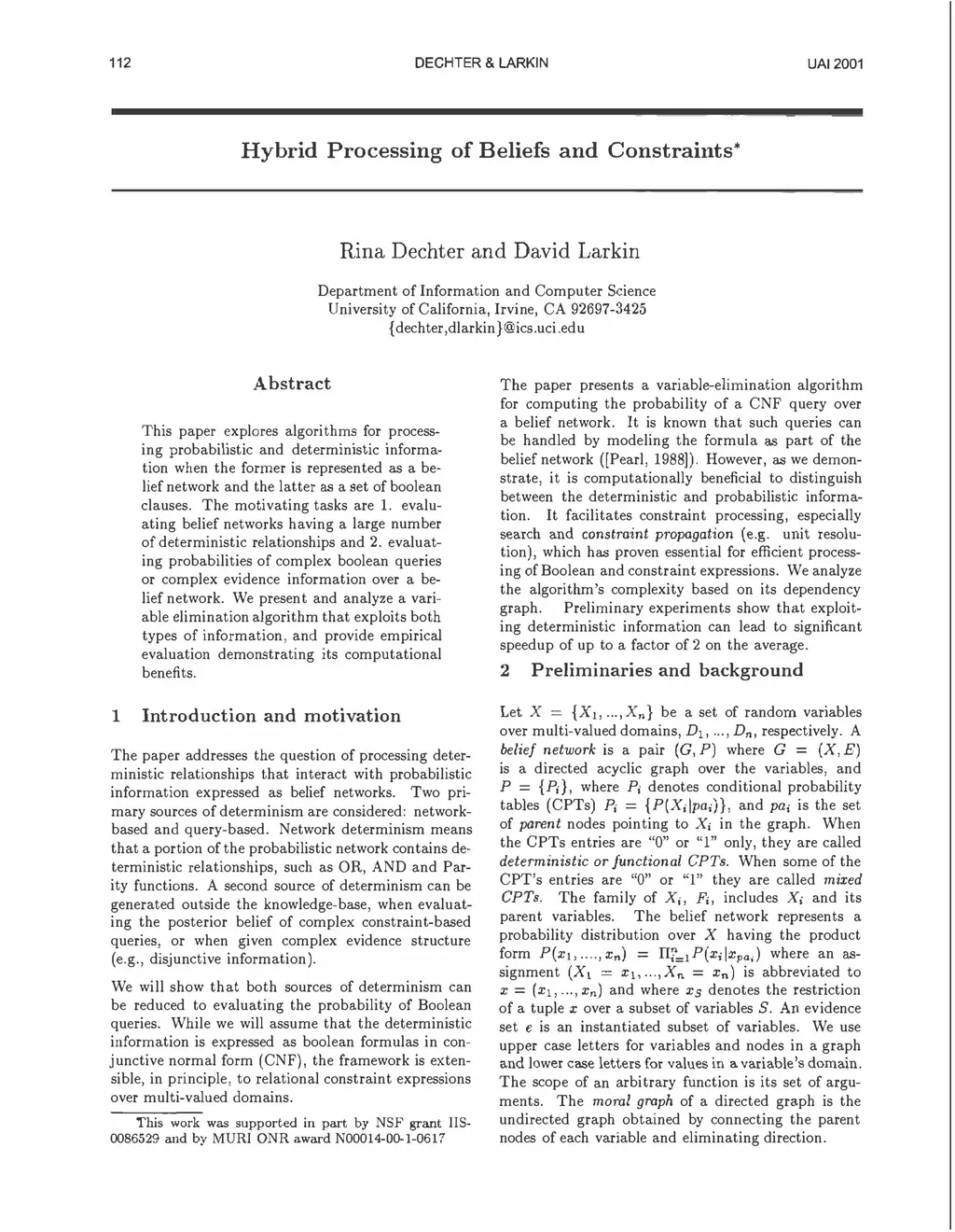 Hybrid Processing of Beliefs and Constraints