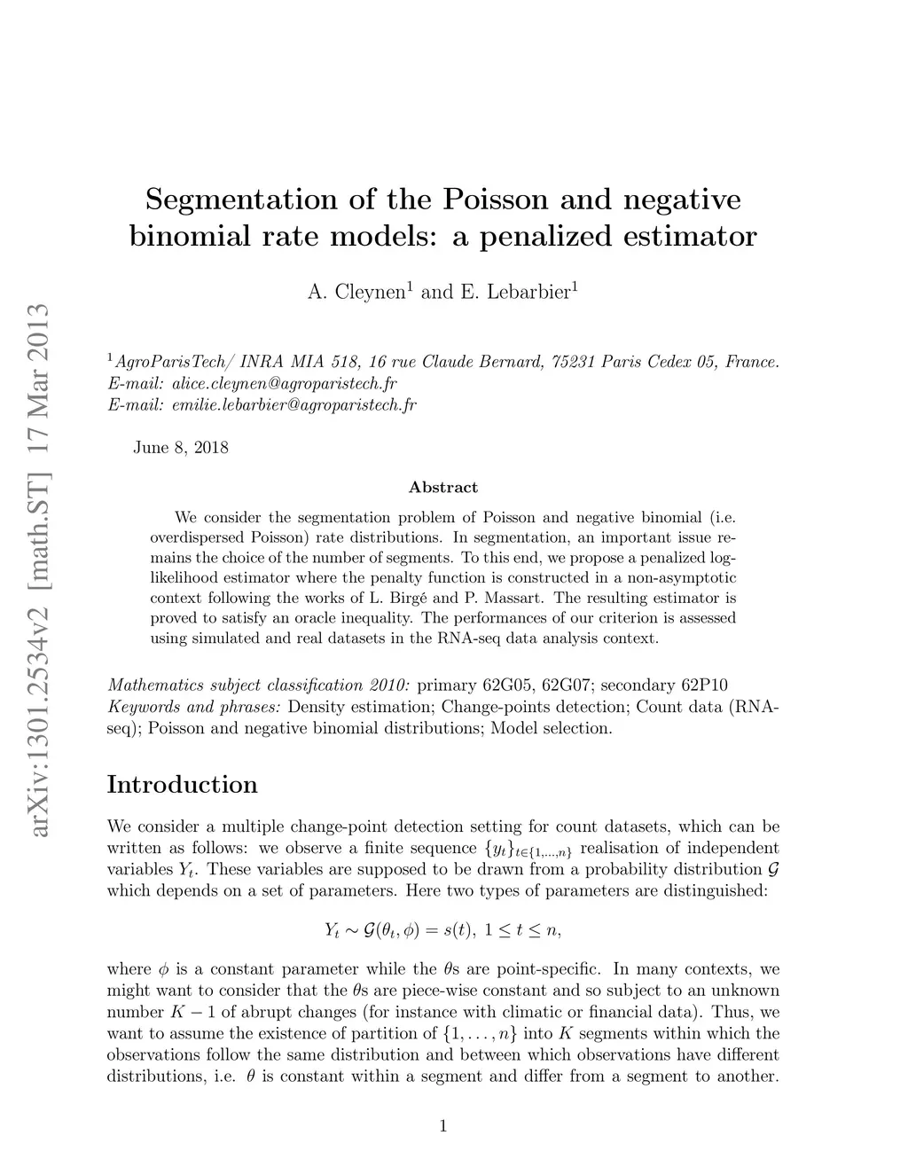 Segmentation of the Poisson and negative binomial rate models: a