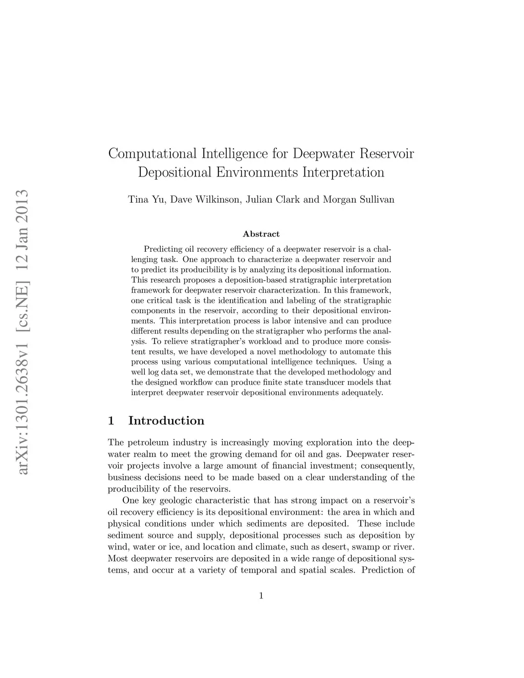 Computational Intelligence for Deepwater Reservoir Depositional