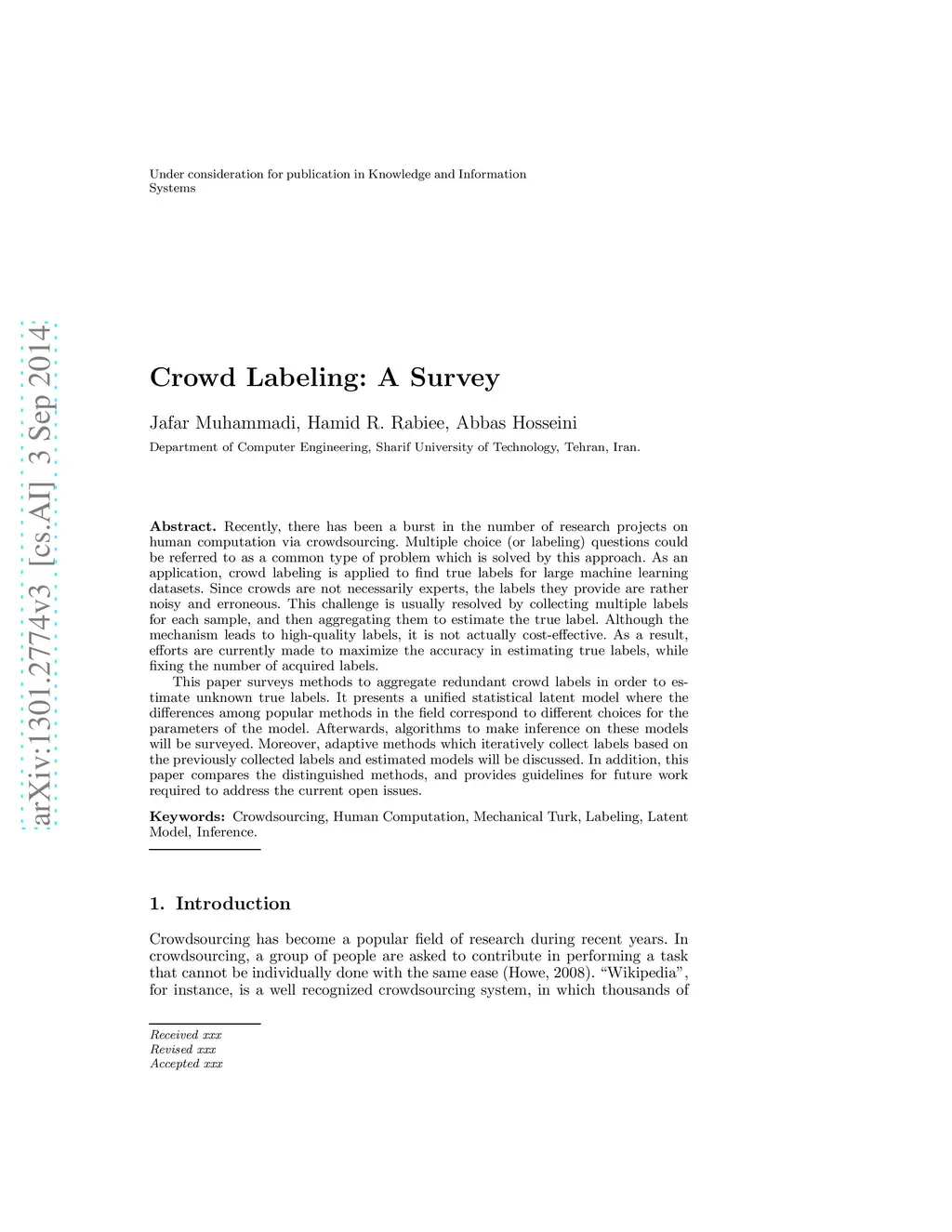 Crowd Labeling: a survey