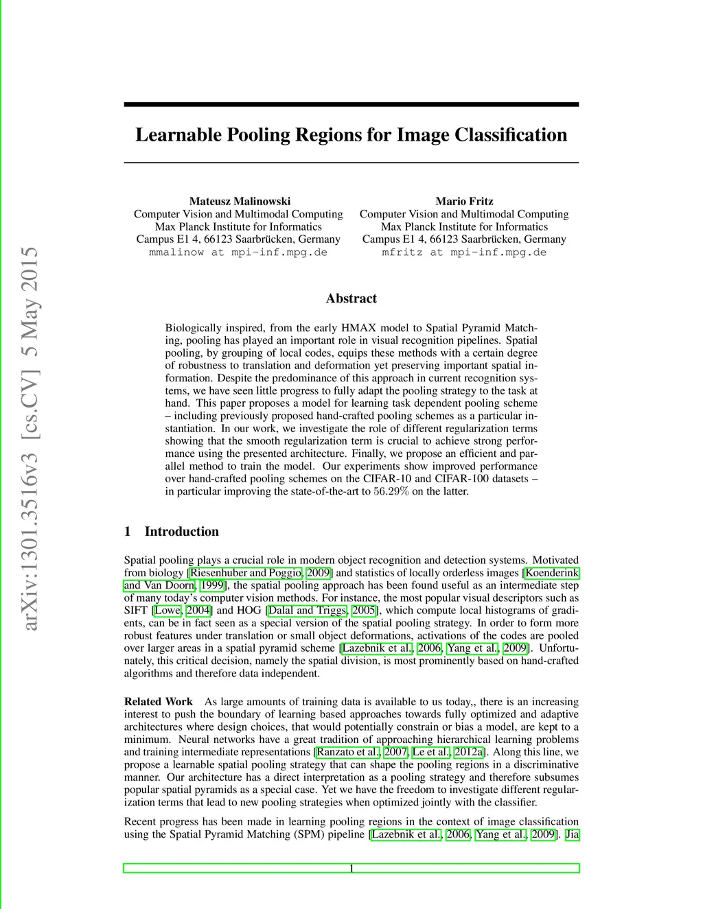 Biologically inspired, from the early HMAX model to Spatial Pyramid Matching, pooling has played an important role in visual recognition pipelines. Spatial pooling, by grouping of local codes, equips these methods with a certain degree of robustness to translation and deformation yet preserving important spatial information. Despite the predominance of this approach in current recognition systems, we have seen little progress to fully adapt the pooling strategy to the task at hand. This paper proposes a model for learning task dependent pooling scheme -- including previously proposed hand-crafted pooling schemes as a particular instantiation. In our work, we investigate the role of different regularization terms showing that the smooth regularization term is crucial to achieve strong performance using the presented architecture. Finally, we propose an efficient and parallel method to train the model. Our experiments show improved performance over hand-crafted pooling schemes on the CIFAR-10 and CIFAR-100 datasets -- in particular improving the state-of-the-art to 56.29% on the latter.
