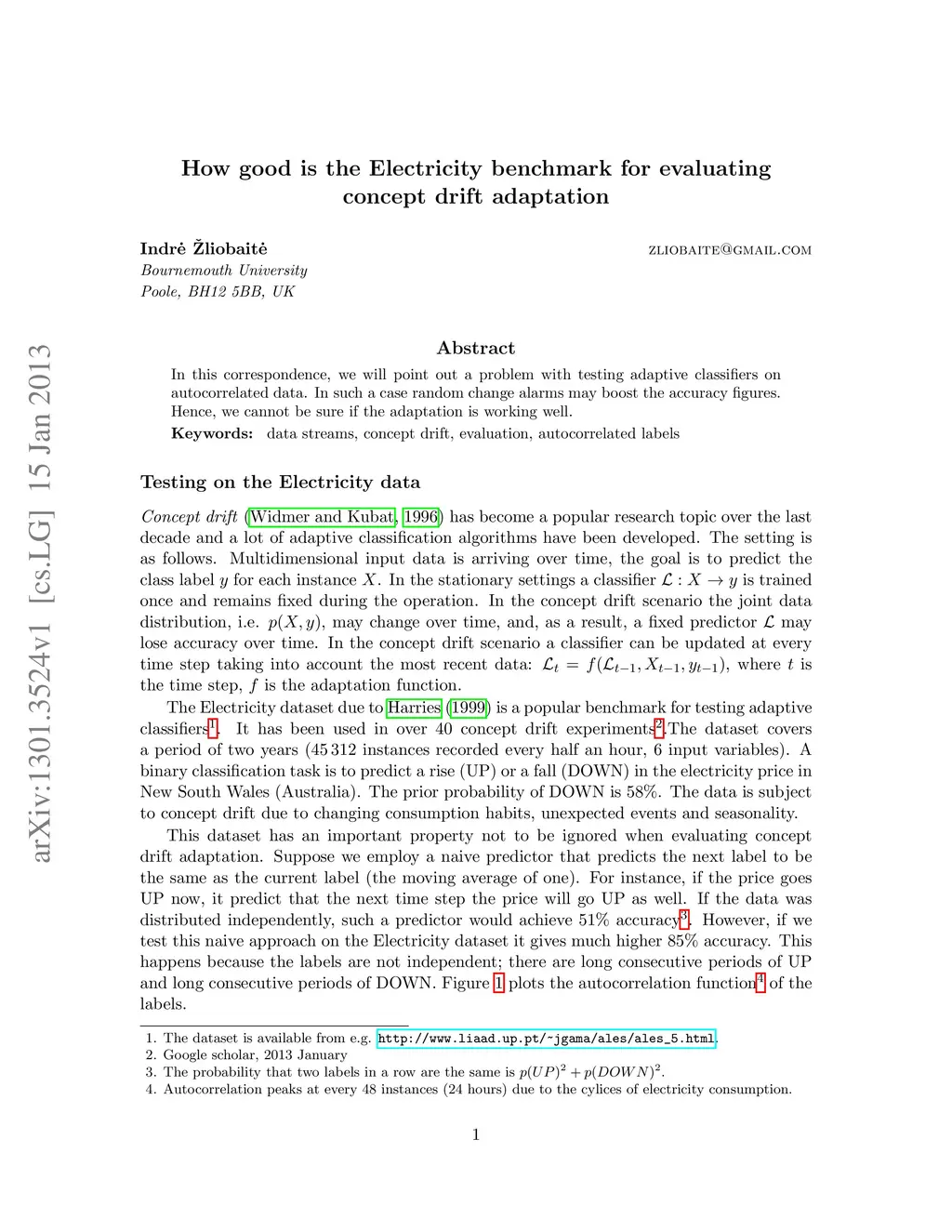 In this correspondence, we will point out a problem with testing adaptive classifiers on autocorrelated data. In such a case random change alarms may boost the accuracy figures. Hence, we cannot be sure if the adaptation is working well.