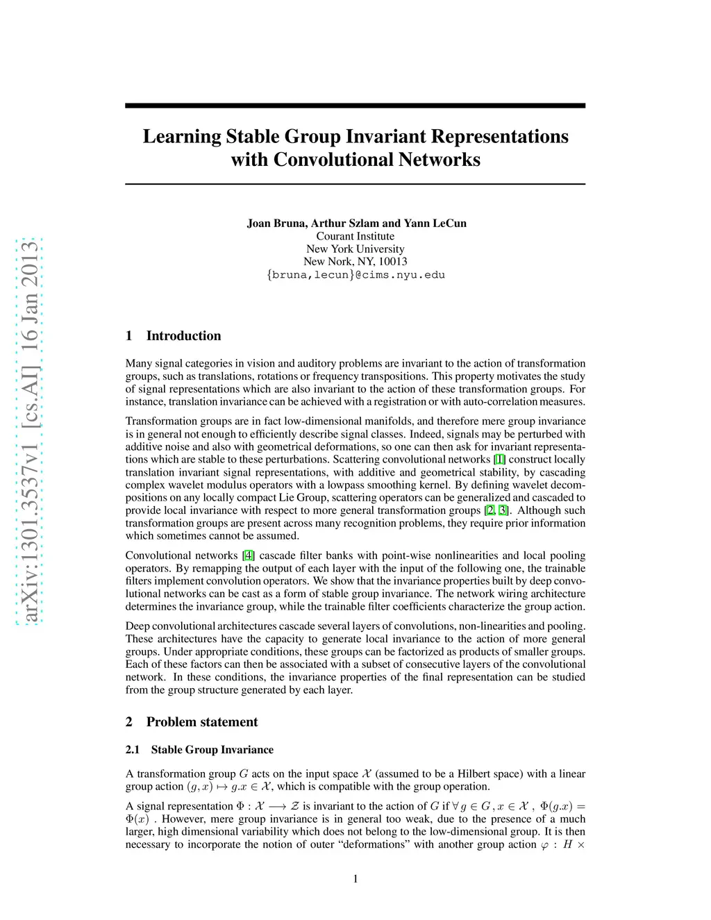 Learning Stable Group Invariant Representations with Convolutional