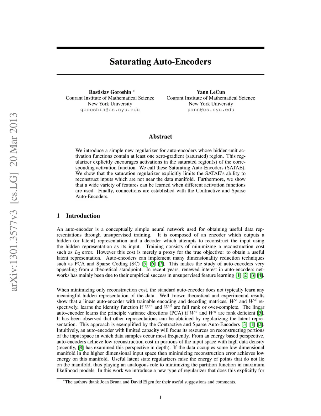 Saturating Auto-Encoders