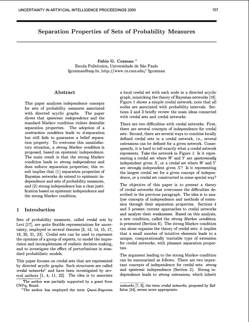 This paper analyzes independence concepts for sets of probability measures associated with directed acyclic graphs. The paper shows that epistemic independence and the standard Markov condition violate desirable separation properties. The adoption of a contraction condition leads to d-separation but still fails to guarantee a belief separation property. To overcome this unsatisfactory situation, a strong Markov condition is proposed, based on epistemic independence. The main result is that the strong Markov condition leads to strong independence and does enforce separation properties; this result implies that (1) separation properties of Bayesian networks do extend to epistemic independence and sets of probability measures, and (2) strong independence has a clear justification based on epistemic independence and the strong Markov condition.