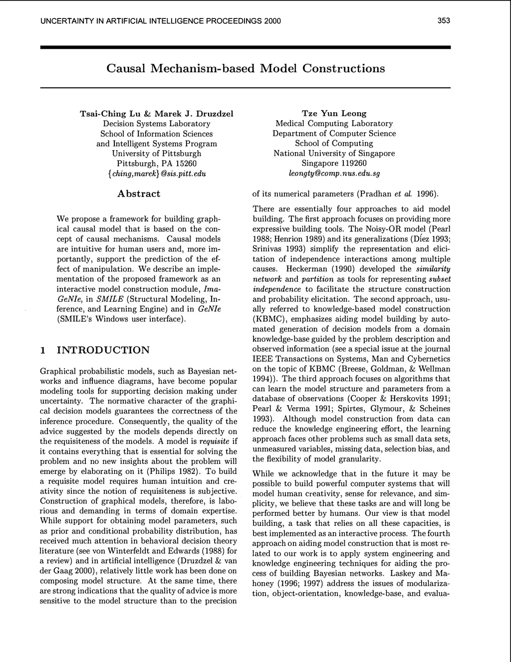 We propose a framework for building graphical causal model that is based on the concept of causal mechanisms. Causal models are intuitive for human users and, more importantly, support the prediction of the effect of manipulation. We describe an implementation of the proposed framework as an interactive model construction module, ImaGeNIe, in SMILE (Structural Modeling, Inference, and Learning Engine) and in GeNIe (SMILE's Windows user interface).