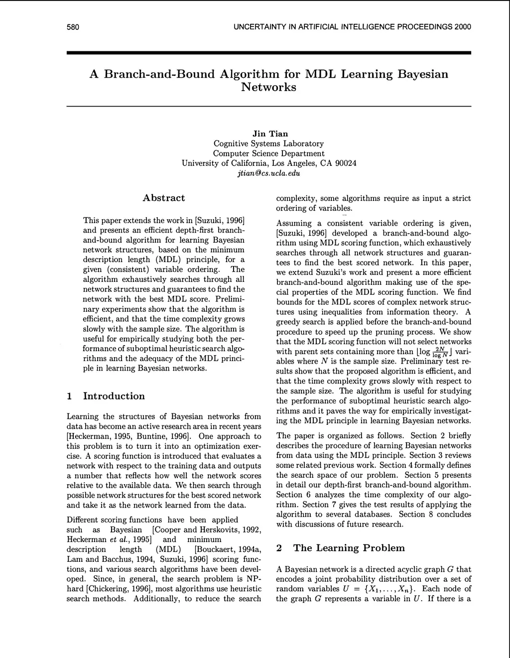 Conference on Uncertainty in Artificial Intelligence (UAI), 2000