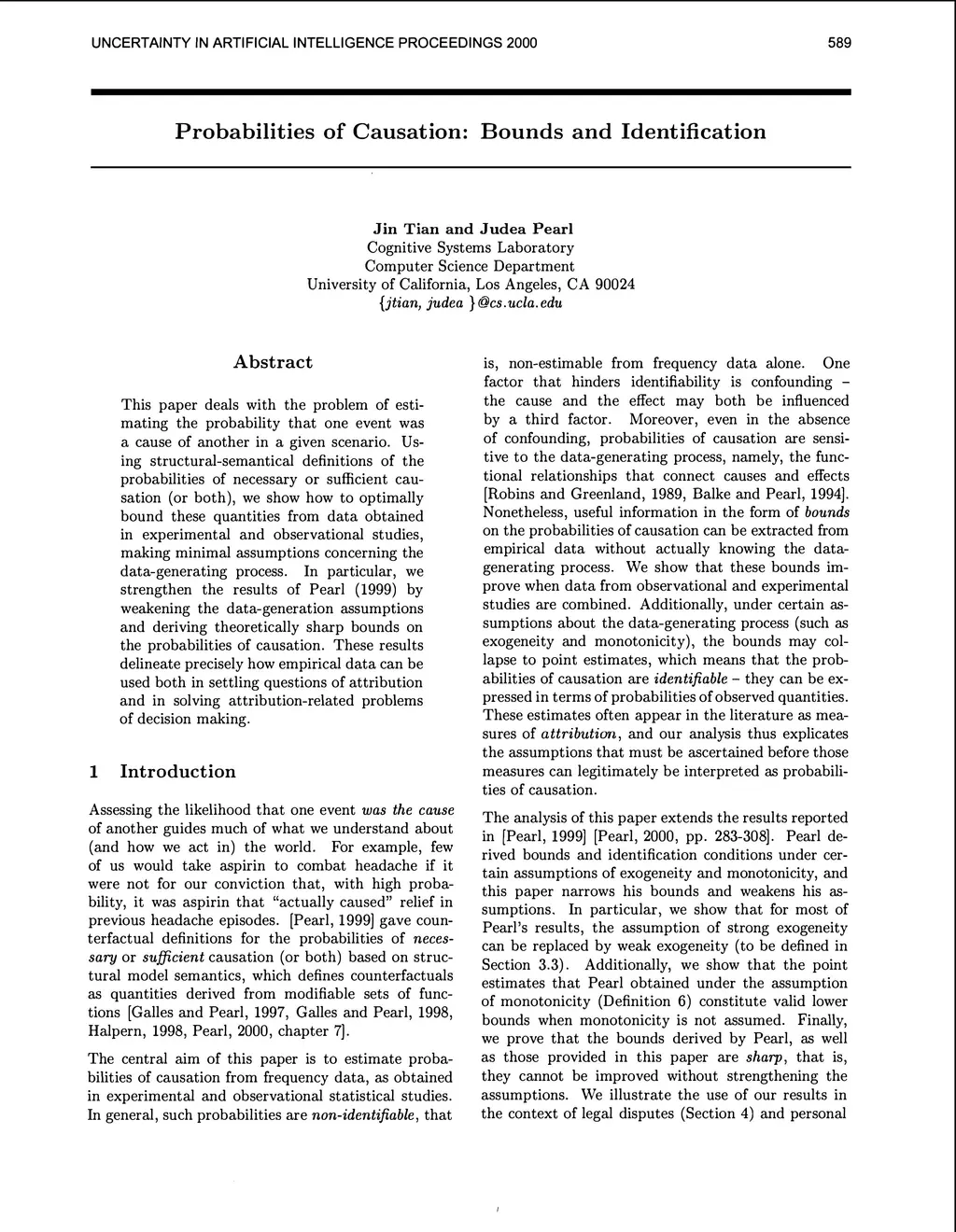 This paper deals with the problem of estimating the probability that one event was a cause of another in a given scenario. Using structural-semantical definitions of the probabilities of necessary or sufficient causation (or both), we show how to optimally bound these quantities from data obtained in experimental and observational studies, making minimal assumptions concerning the data-generating process. In particular, we strengthen the results of Pearl (1999) by weakening the data-generation assumptions and deriving theoretically sharp bounds on the probabilities of causation. These results delineate precisely how empirical data can be used both in settling questions of attribution and in solving attribution-related problems of decision making.