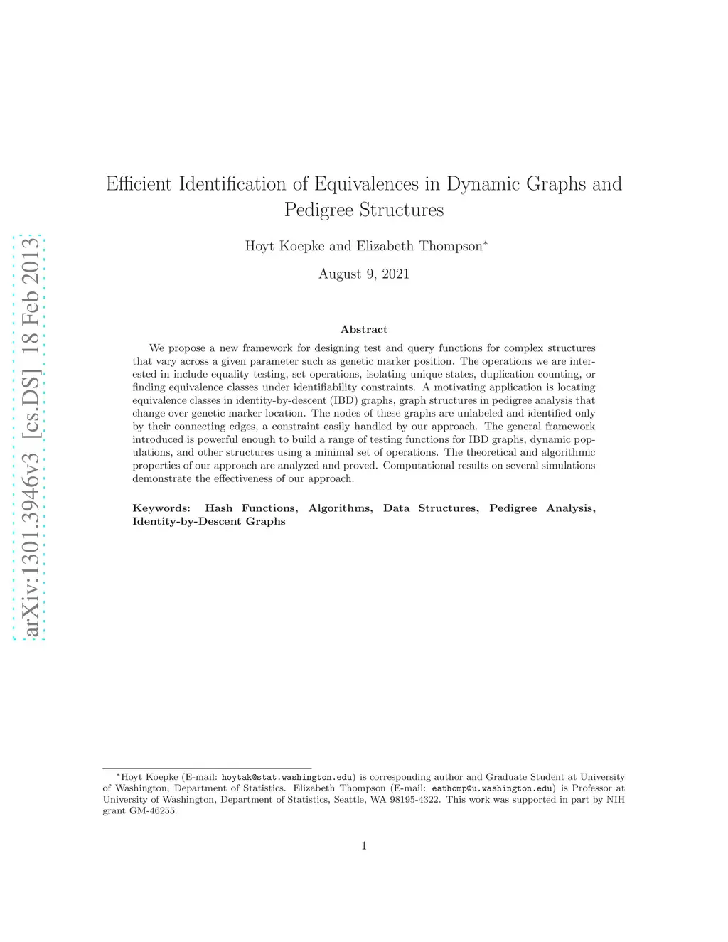 Efficient Identification of Equivalences in Dynamic Graphs and Pedigree
