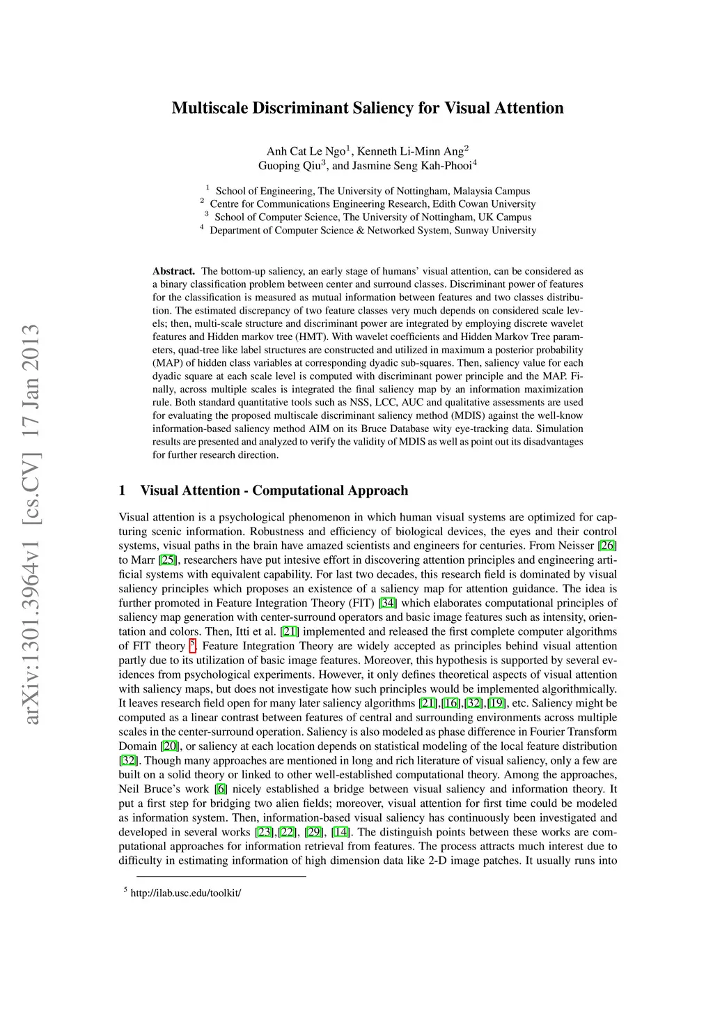 Multiscale Discriminant Saliency for Visual Attention