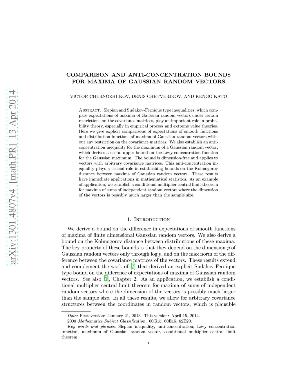 Slepian and Sudakov-Fernique type inequalities, which compare expectations of maxima of Gaussian random vectors under certain restrictions on the covariance matrices, play an important role in probability theory, especially in empirical process and extreme value theories. Here we give explicit comparisons of expectations of smooth functions and distribution functions of maxima of Gaussian random vectors without any restriction on the covariance matrices. We also establish an anti-concentration inequality for the maximum of a Gaussian random vector, which derives a useful upper bound on the L\'{e}vy concentration function for the Gaussian maximum. The bound is dimension-free and applies to vectors with arbitrary covariance matrices. This anti-concentration inequality plays a crucial role in establishing bounds on the Kolmogorov distance between maxima of Gaussian random vectors. These results have immediate applications in mathematical statistics. As an example of application, we establish a conditional multiplier central limit theorem for maxima of sums of independent random vectors where the dimension of the vectors is possibly much larger than the sample size.