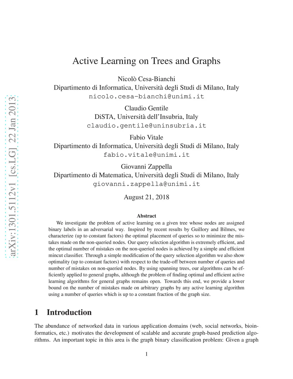 We investigate the problem of active learning on a given tree whose nodes are assigned binary labels in an adversarial way. Inspired by recent results by Guillory and Bilmes, we characterize (up to constant factors) the optimal placement of queries so to minimize the mistakes made on the non-queried nodes. Our query selection algorithm is extremely efficient, and the optimal number of mistakes on the non-queried nodes is achieved by a simple and efficient mincut classifier. Through a simple modification of the query selection algorithm we also show optimality (up to constant factors) with respect to the trade-off between number of queries and number of mistakes on non-queried nodes. By using spanning trees, our algorithms can be efficiently applied to general graphs, although the problem of finding optimal and efficient active learning algorithms for general graphs remains open. Towards this end, we provide a lower bound on the number of mistakes made on arbitrary graphs by any active learning algorithm using a number of queries which is up to a constant fraction of the graph size.