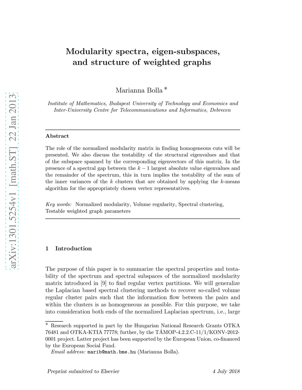 The role of the normalized modularity matrix in finding homogeneous cuts will be presented. We also discuss the testability of the structural eigenvalues and that of the subspace spanned by the corresponding eigenvectors of this matrix. In the presence of a spectral gap between the k-1 largest absolute value eigenvalues and the remainder of the spectrum, this in turn implies the testability of the sum of the inner variances of the k clusters that are obtained by applying the k-means algorithm for the appropriately chosen vertex representatives.