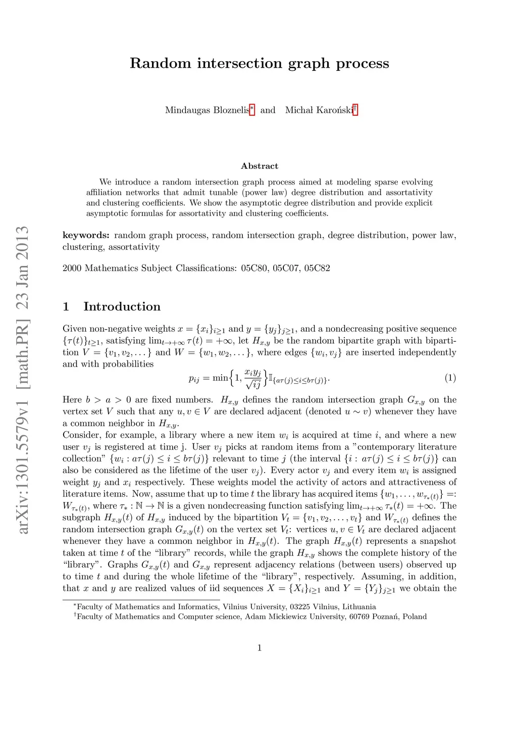 We introduce a random intersection graph process aimed at modeling sparse evolving affiliation networks that admit tunable (power law) degree distribution and assortativity and clustering coefficients. We show the asymptotic degree distribution and provide explicit asymptotic formulas for assortativity and clustering coefficients.