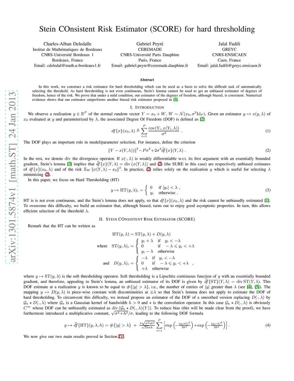 Stein COnsistent Risk Estimator (SCORE) for hard thresholding