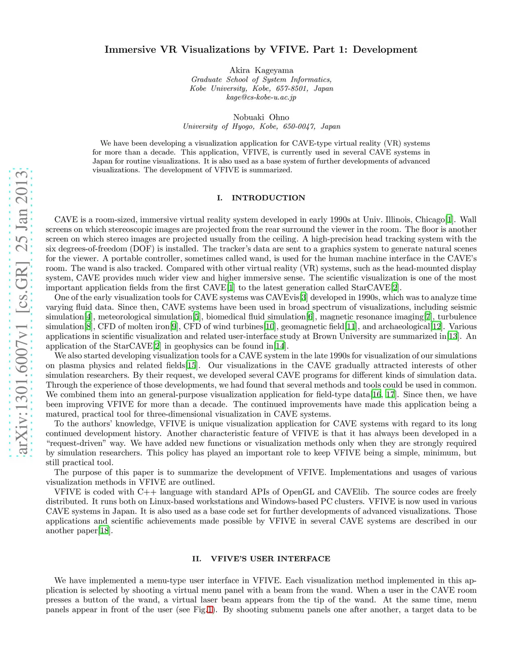 Immersive VR Visualizations by VFIVE. Part 1: Development