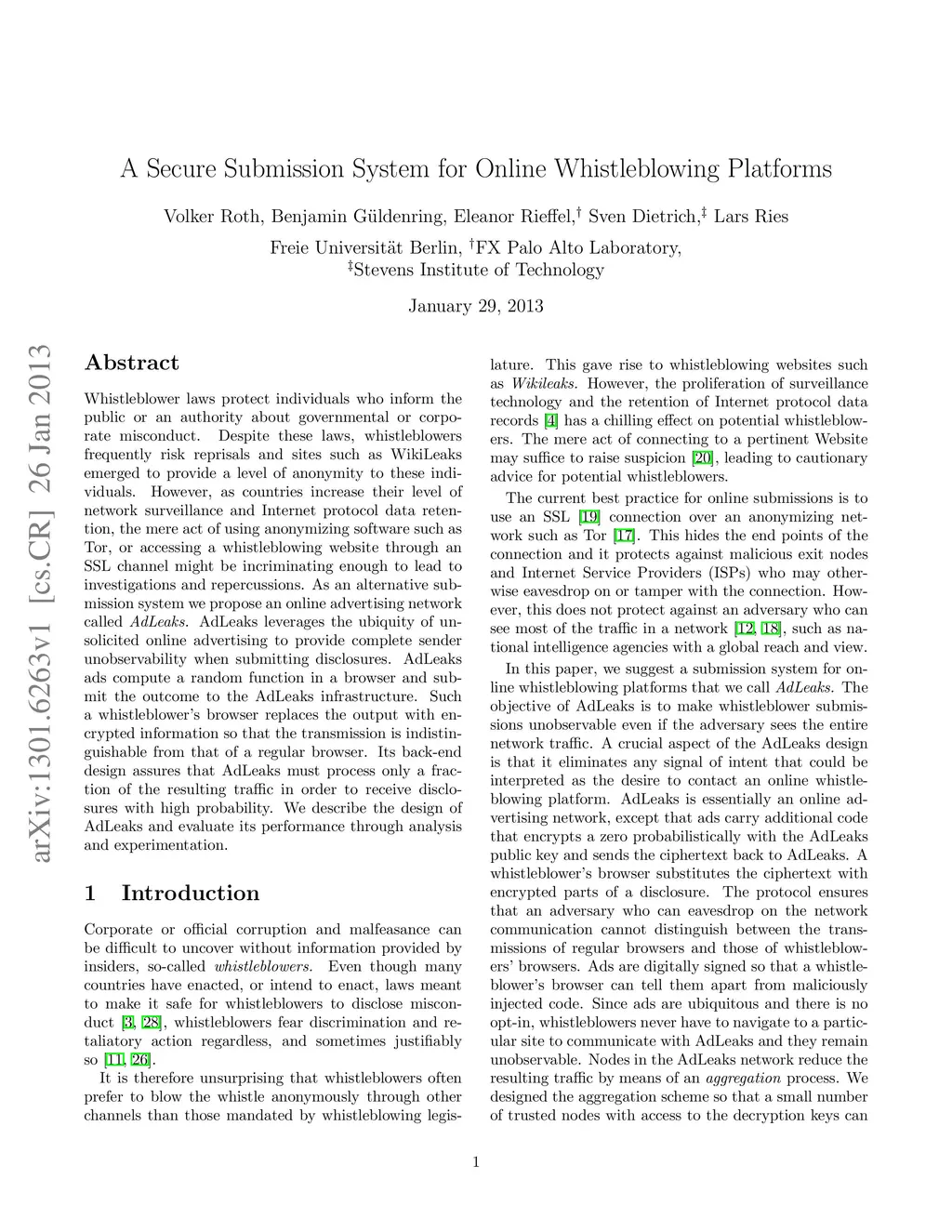 A Secure Submission System for Online Whistleblowing Platforms