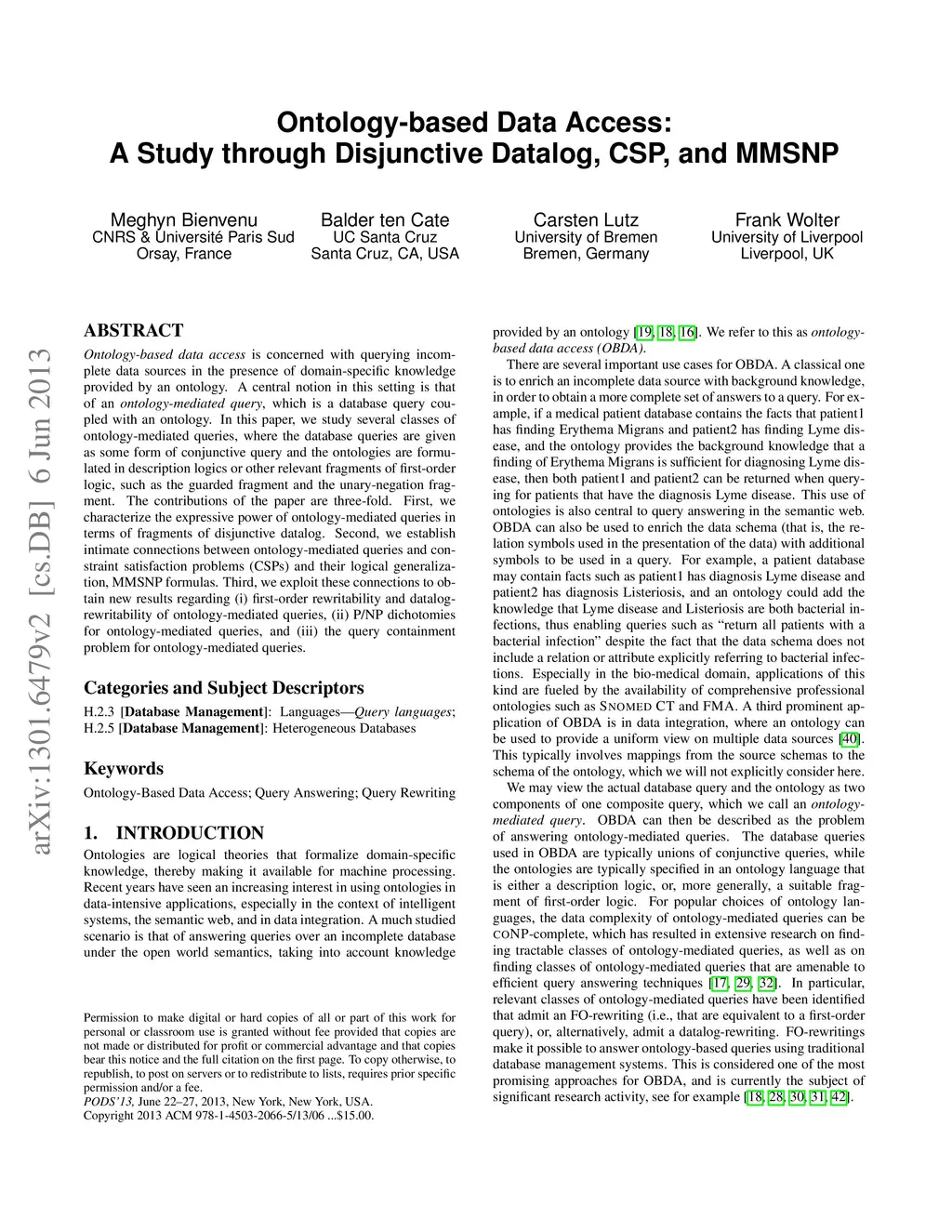 Ontology-based Data Access: A Study through Disjunctive Datalog, CSP,
