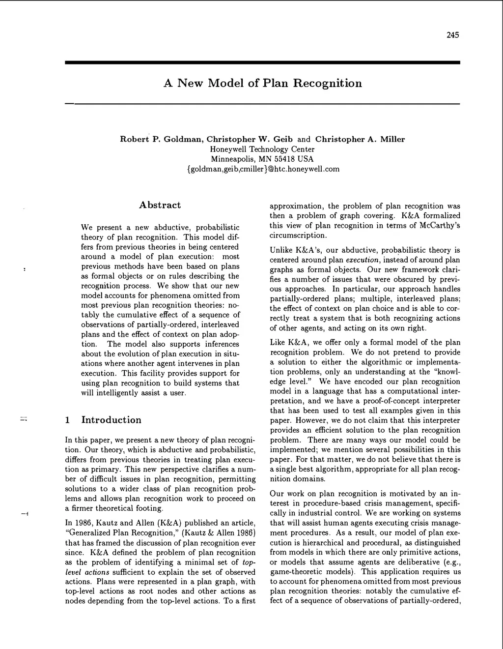 We present a new abductive, probabilistic theory of plan recognition. This model differs from previous plan recognition theories in being centered around a model of plan execution: most previous methods have been based on plans as formal objects or on rules describing the recognition process. We show that our new model accounts for phenomena omitted from most previous plan recognition theories: notably the cumulative effect of a sequence of observations of partially-ordered, interleaved plans and the effect of context on plan adoption. The model also supports inferences about the evolution of plan execution in situations where another agent intervenes in plan execution. This facility provides support for using plan recognition to build systems that will intelligently assist a user.