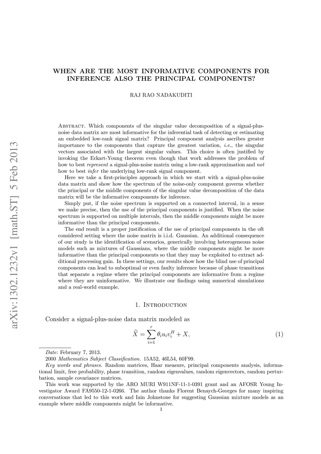 Which components of the singular value decomposition of a signal-plus-noise data matrix are most informative for the inferential task of detecting or estimating an embedded low-rank signal matrix? Principal component analysis ascribes greater importance to the components that capture the greatest variation, i.e., the singular vectors associated with the largest singular values. This choice is often justified by invoking the Eckart-Young theorem even though that work addresses the problem of how to best represent a signal-plus-noise matrix using a low-rank approximation and not how to best_infer_ the underlying low-rank signal component. Here we take a first-principles approach in which we start with a signal-plus-noise data matrix and show how the spectrum of the noise-only component governs whether the principal or the middle components of the singular value decomposition of the data matrix will be the informative components for inference. Simply put, if the noise spectrum is supported on a connected interval, in a sense we make precise, then the use of the principal components is justified. When the noise spectrum is supported on multiple intervals, then the middle components might be more informative than the principal components. The end result is a proper justification of the use of principal components in the setting where the noise matrix is i.i.d. Gaussian and the identification of scenarios, generically involving heterogeneous noise models such as mixtures of Gaussians, where the middle components might be more informative than the principal components so that they may be exploited to extract additional processing gain. Our results show how the blind use of principal components can lead to suboptimal or even faulty inference because of phase transitions that separate a regime where the principal components are informative from a regime where they are uninformative.