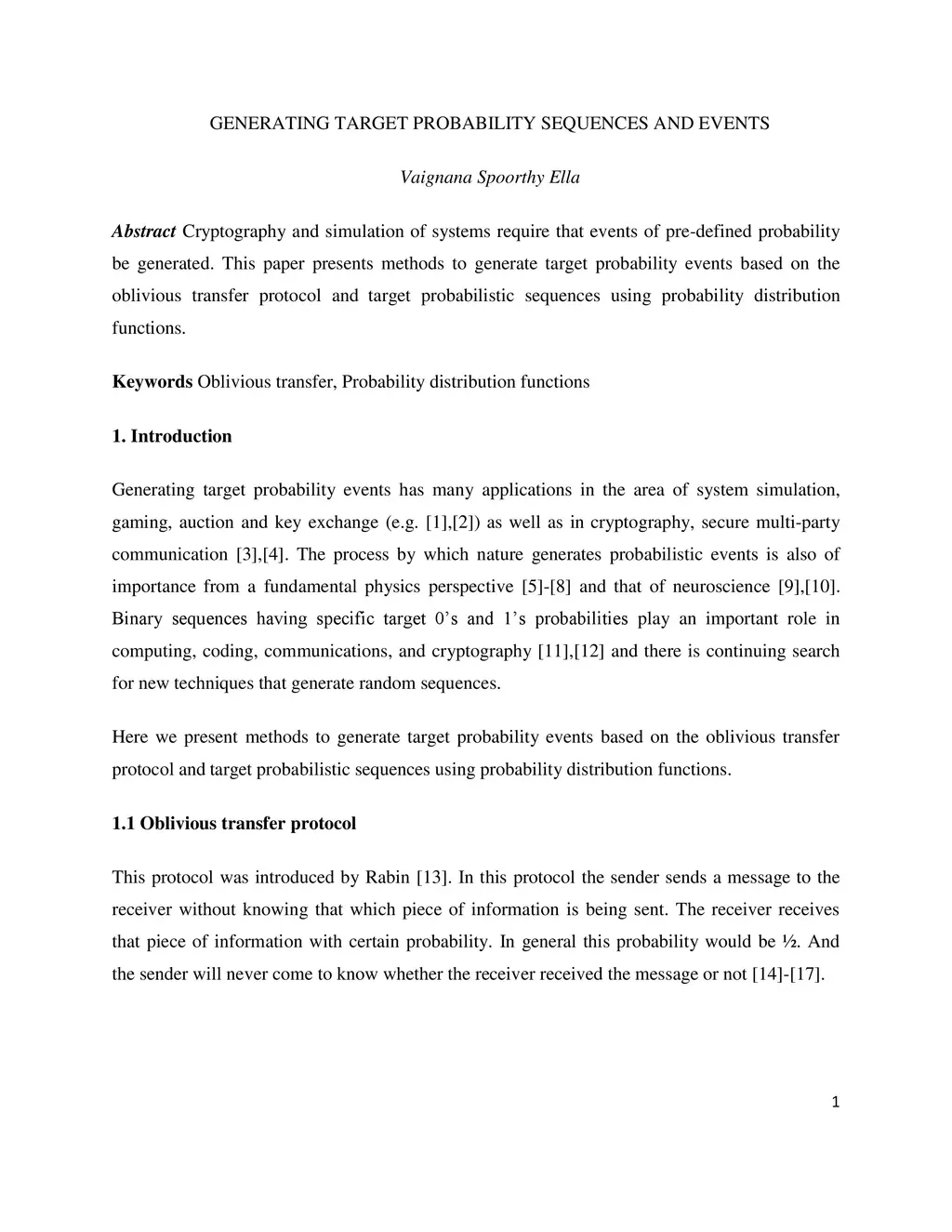 Cryptography and simulation of systems require that events of pre-defined probability be generated. This paper presents methods to generate target probability events based on the oblivious transfer protocol and target probabilistic sequences using probability distribution functions.