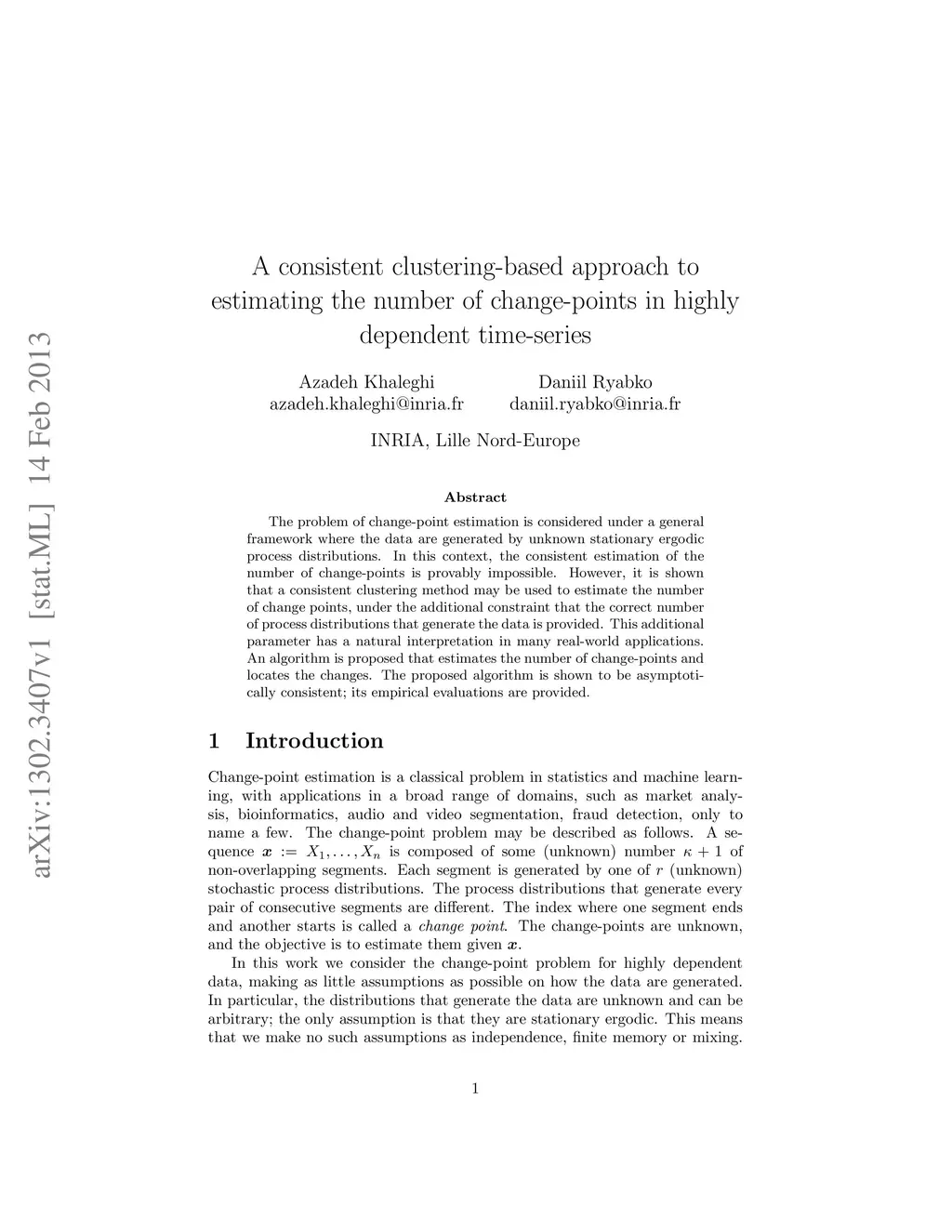 The problem of change-point estimation is considered under a general framework where the data are generated by unknown stationary ergodic process distributions. In this context, the consistent estimation of the number of change-points is provably impossible. However, it is shown that a consistent clustering method may be used to estimate the number of change points, under the additional constraint that the correct number of process distributions that generate the data is provided. This additional parameter has a natural interpretation in many real-world applications. An algorithm is proposed that estimates the number of change-points and locates the changes. The proposed algorithm is shown to be asymptotically consistent; its empirical evaluations are provided.