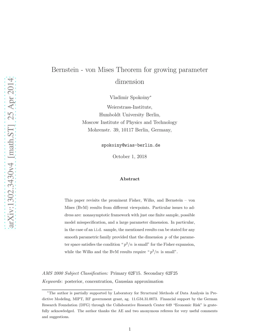This paper revisits the prominent Fisher, Wilks, and Bernstein -- von Mises (BvM) results from different viewpoints. Particular issues to address are: nonasymptotic framework with just one finite sample, possible model misspecification, and a large parameter dimension. In particular, in the case of an i.i.d. sample, the mentioned results can be stated for any smooth parametric family provided that the dimension \(p \) of the parameter space satisfies the condition "\(p^{2}/n \) is small" for the Fisher expansion, while the Wilks and the BvM results require "\(p^{3}/n \) is small".