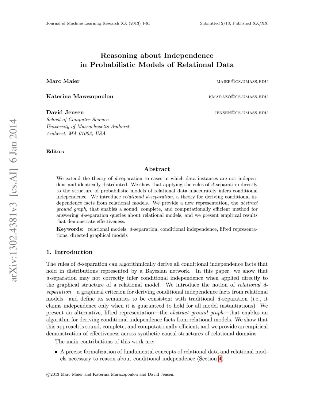 Bayesian networks leverage conditional independence to compactly encode joint probability distributions. Many learning algorithms exploit the constraints implied by observed conditional independencies to learn the structure of Bayesian networks. The rules of d-separation provide a theoretical and algorithmic framework for deriving conditional independence facts from model structure. However, this theory only applies to Bayesian networks. Many real-world systems, such as social or economic systems, are characterized by interacting heterogeneous entities and probabilistic dependencies that cross the boundaries of entities. Consequently, researchers have developed extensions to Bayesian networks that can represent these relational dependencies. We show that the theory of d-separation inaccurately infers conditional independence when applied directly to the structure of probabilistic models of relational data. We introduce relational d-separation, a theory for deriving conditional independence facts from relational models. We provide a new representation, the abstract ground graph, that enables a sound, complete, and computationally efficient method for answering d-separation queries about relational models, and we present empirical results that demonstrate effectiveness.
