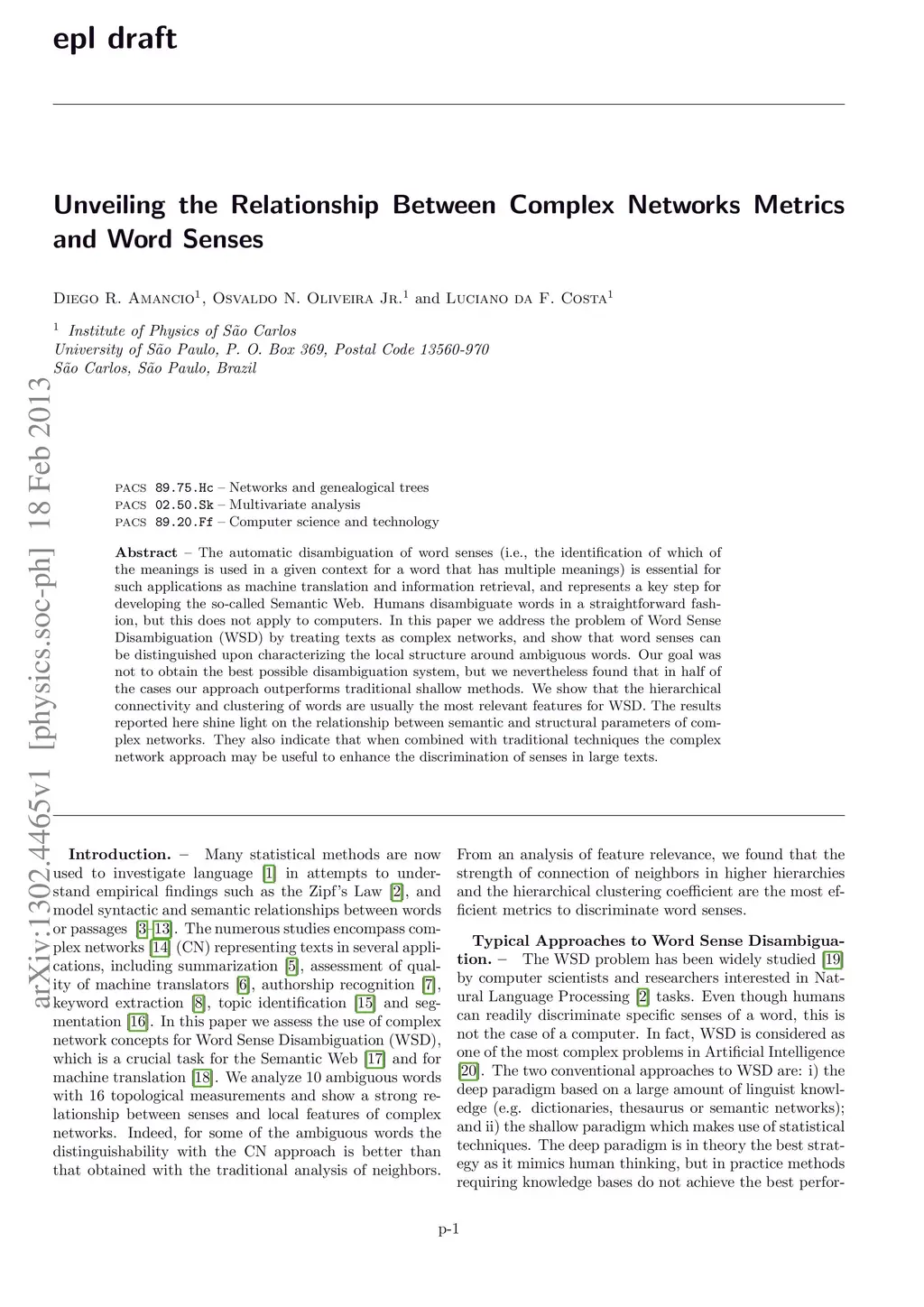 The automatic disambiguation of word senses (i.e., the identification of which of the meanings is used in a given context for a word that has multiple meanings) is essential for such applications as machine translation and information retrieval, and represents a key step for developing the so-called Semantic Web. Humans disambiguate words in a straightforward fashion, but this does not apply to computers. In this paper we address the problem of Word Sense Disambiguation (WSD) by treating texts as complex networks, and show that word senses can be distinguished upon characterizing the local structure around ambiguous words. Our goal was not to obtain the best possible disambiguation system, but we nevertheless found that in half of the cases our approach outperforms traditional shallow methods. We show that the hierarchical connectivity and clustering of words are usually the most relevant features for WSD. The results reported here shine light on the relationship between semantic and structural parameters of complex networks. They also indicate that when combined with traditional techniques the complex network approach may be useful to enhance the discrimination of senses in large texts