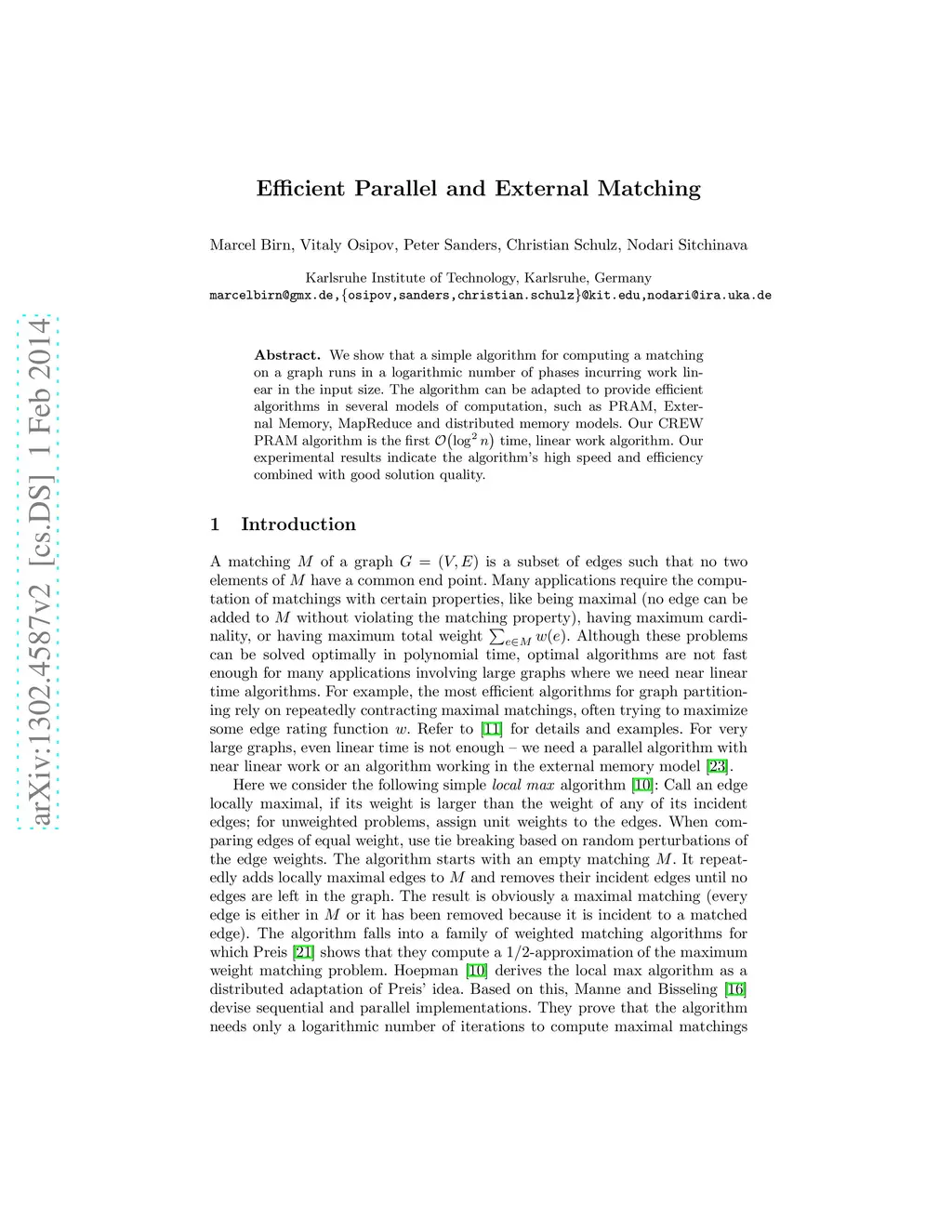 Efficient Parallel and External Matching