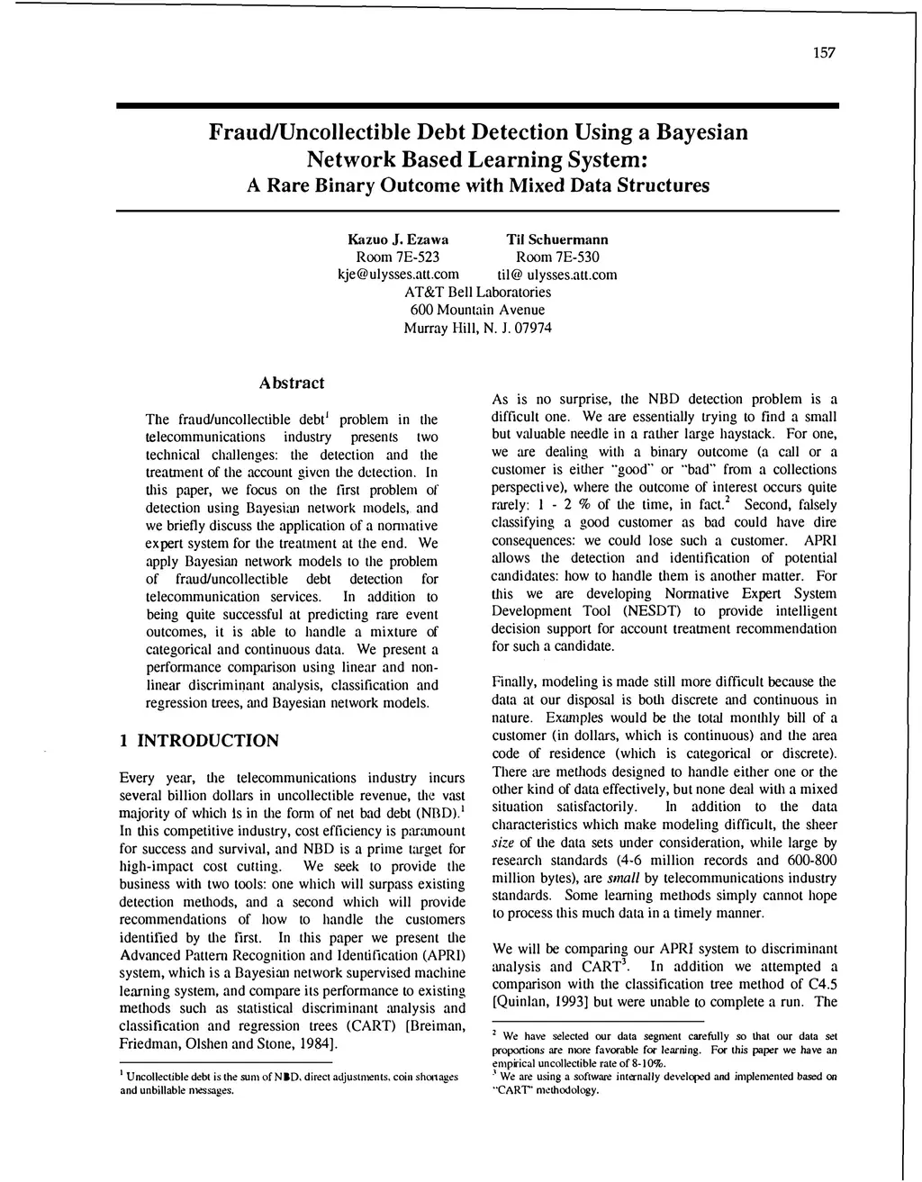Fraud/Uncollectible Debt Detection Using a Bayesian Network Based
