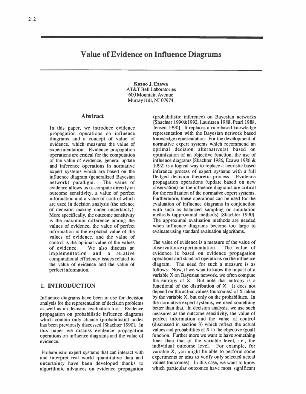 In this paper, we introduce evidence propagation operations on influence diagrams and a concept of value of evidence, which measures the value of experimentation. Evidence propagation operations are critical for the computation of the value of evidence, general update and inference operations in normative expert systems which are based on the influence diagram (generalized Bayesian network) paradigm. The value of evidence allows us to compute directly an outcome sensitivity, a value of perfect information and a value of control which are used in decision analysis (the science of decision making under uncertainty). More specifically, the outcome sensitivity is the maximum difference among the values of evidence, the value of perfect information is the expected value of the values of evidence, and the value of control is the optimal value of the values of evidence. We also discuss an implementation and a relative computational efficiency issues related to the value of evidence and the value of perfect information.